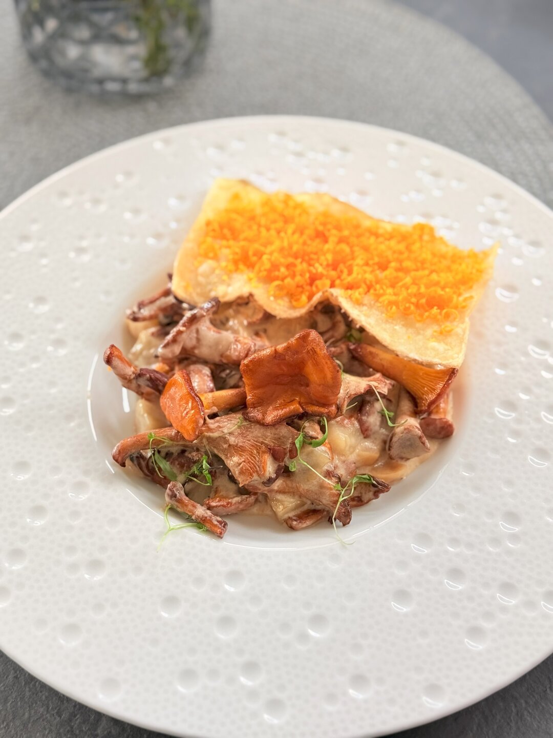 Пробуем авторское блюдо от бренд-шефа Антона Рубцова — «Лисички в сметанном соусе с топинамбуром и картофелем». Изысканное сочетание ароматных грибов, нежных корнеплодов и сливочного соуса точно обеспечит новые вкусовые впечатление. Блюдо прекрасно подойдет для гастрономического вечера, семейного ужина или праздничного стола. Вкус лисичек в сметанном соусе с топинамбуром и картофелем — это добрая классика с современным акцентом.