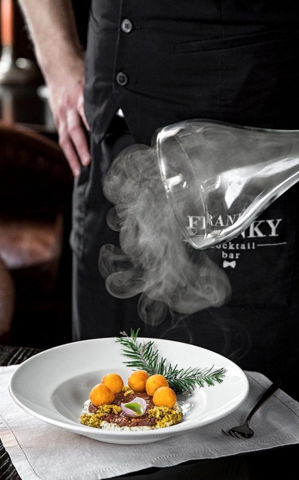 Бар косплеит американские клубные рестораны 50-х годов, куда буржуазия уединялась на бифштекс и заговоры против неугодного сенатора: кожаные кресла, портреты маслом — в том числе Фрэнка Синатры, в честь которого названо заведение. Коктейли готовят по дотошной карте, где рассказывают не только состав, но и предысторию напитка. Например, Hanky Panky: аутентичная рецептура коктейля — джин, красный вермут и фернет бранка — была увековечена в знаменитой Savoy Cocktail Book Гарри Крэдока.
