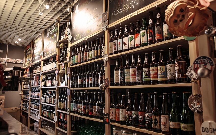 Крафтовый ботл-шоп и микробар, в котором встречают цитатой Чарлза Буковски: «Выпить почти всем надо, только они об этом не знают». Молочный портер, кокосовый стаут, тропический эль, барливайн с тростниковым сахаром — более четырехсот бутылочных сортов и десяток разливных. Наличие последних остроумно транслируются на плазмах — так что шансы ткнуть в стоп-лист равны нулю.