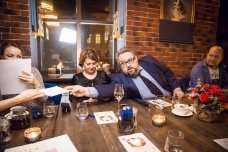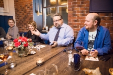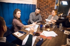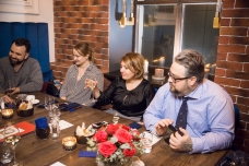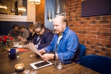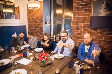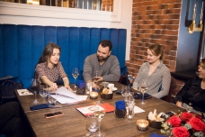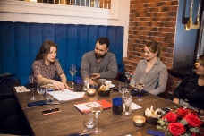 Эксперты премии «Что Где Есть в Костроме Ярославле Иваново» по приглашению «Собака.ru» собрались на ужин в новом ресторане «Огни», открытие которого случилось буквально месяц назад. Шеф-повар Илья Комар, приготовил для уважаемых Фуди и редакции Собака.ru сет из четырех курсов, в который вошли брускетта с крабом, треска со шпинатом с соусом из икры, стейк миньон со спаржей и конечно непревзойденные десерты - уже знаменитая «Павлова» Огней пришлась по вкусу искушенной компании. Фуди и гости вечера, среди которых были Анна Павлова, Антон Соколовский и Дмитрий Лысаков, Нателла Федореева и Дарья Суставова, до позднего вечера рассуждали об изменениях в гастрономическом климате региона, номинантах-фаворитах и вероятных победителях, а затем дали клятву истинного фуди — вновь собраться 23 ноября на церемонии вручения премии в Горке. На заключительном ужине фуди — самые активные завсегдатаи ресторанов — закрытым голосованием выбрали победителей, чьи имена будут объявлены 23 ноября на торжественной церемонии вручения премии «Что Где Есть в Костроме Ярославле Иваново» в Горке. До встречи уже в эту пятницу!