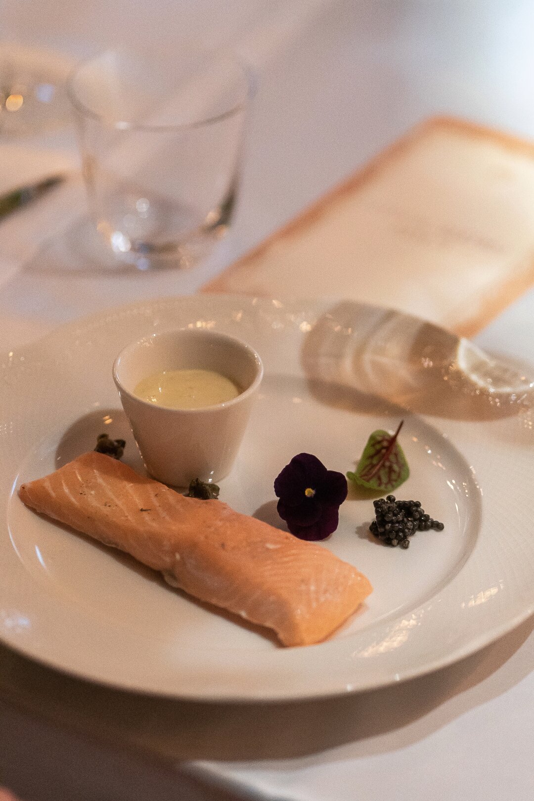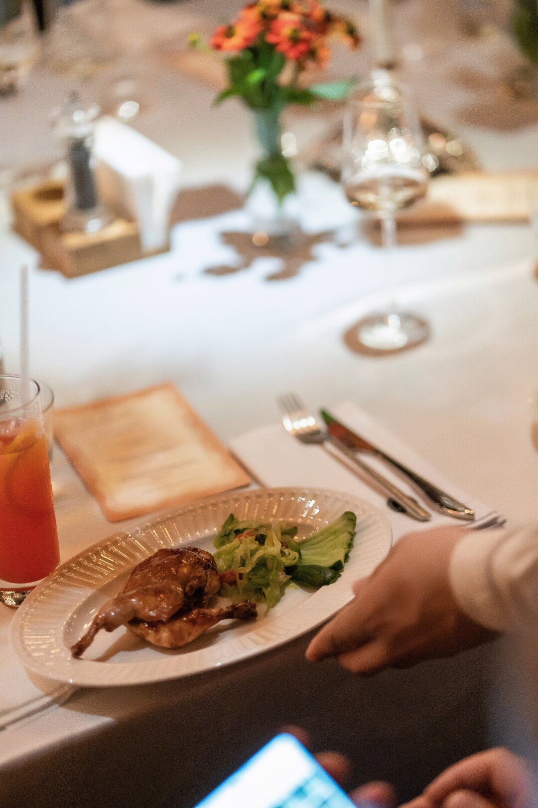 Меню оправдало ожидания гостей. Вступление составил суп «опорто» с пирожками: прозрачный бульон, тонкий аромат, аккуратная расстановка акцентов. Затем подали форель с каперсовым соусом, и ужин продолжил светлую, свежую линию вкуса. К столичному блеску отсылает котлета де-воляй из пулярки с гарниром из спаржи и цветной капусты. Блюдо собрано строго и эффектно. Фаворитом зала стала дичь конфи — бархатная текстура и выразительный, долгий вкус отметены единодушно. Десертной точкой стали дам-бланш и буше.