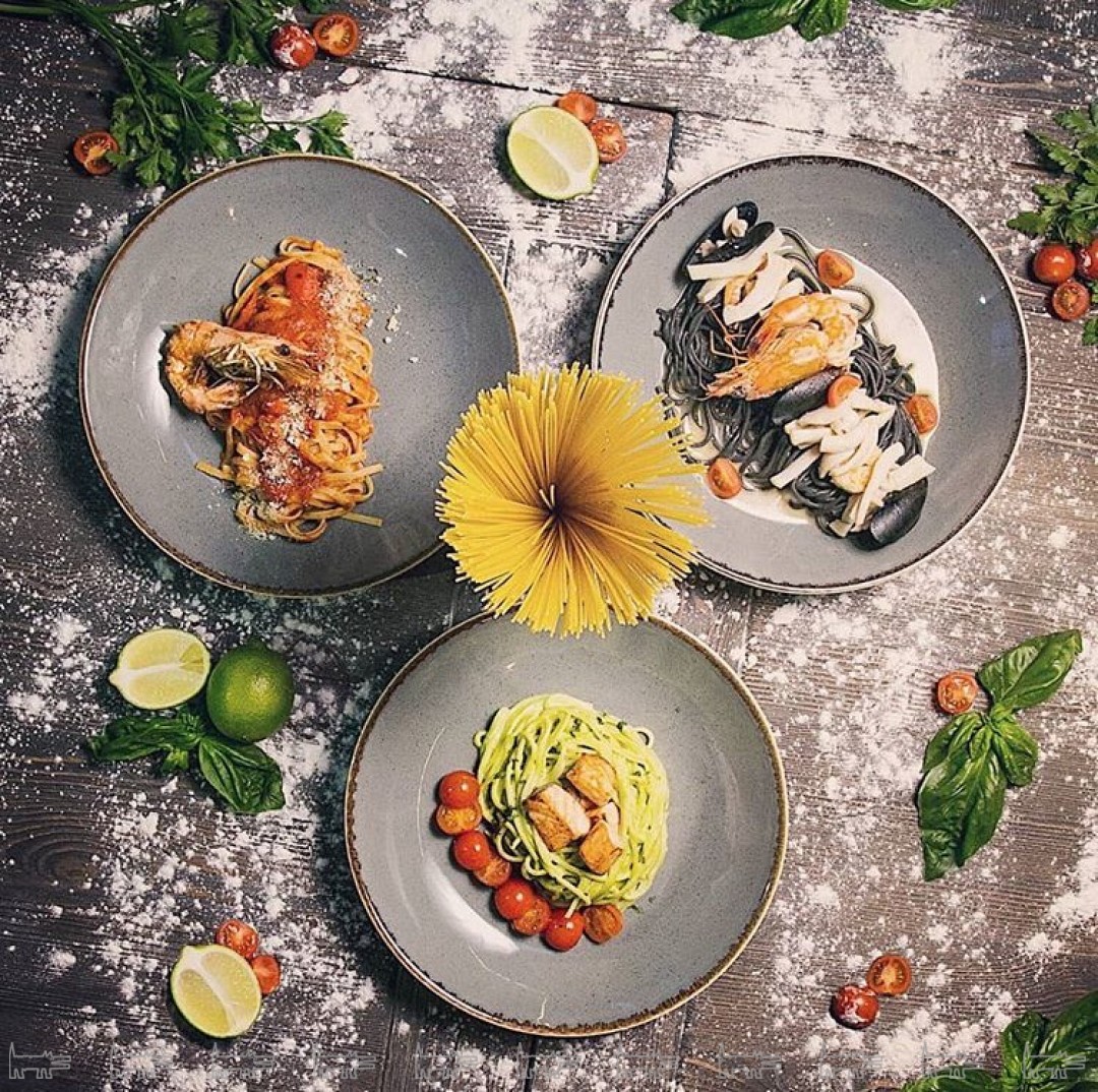 Специально для тонких ценителей морепродуктов в меню есть паста «Нери» с гребешками, креветками, кальмарами, мидиями и соусом из анчоусов.