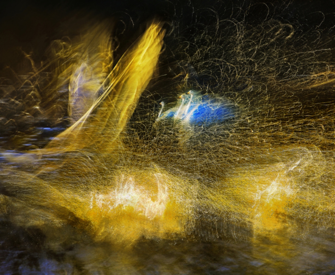 Японский фотохудожник каждый год наблюдает за тем, как стаи лебедей прилетают на зимовку из Сибири в Японию. За пять лет наблюдений за птицами он сделал более 450 тысяч фотографий. Утияма использует для печати особую бумагу «фреско жикле». Она покрыта специальным составом, изготовленным по старинной японской технологии. Специфика снимков позволяет сравнить их с масляной живописью.
