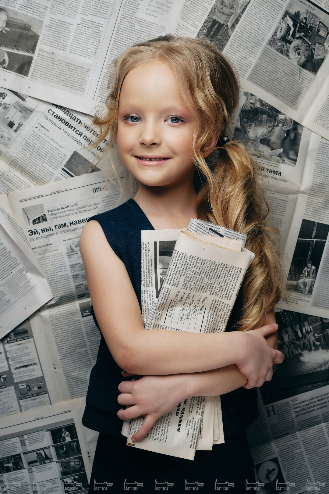 "Мне очень нравится быть моделью, только ещё я хочу стать актрисой, балериной и художником. Люблю наряжаться в красивые пышные платья, и делать разные прически— кудряшки на кончиках и дракончики — мне их заплетает мама и я с ними хожу в детский сад. В свободное время, если у меня нет занятий в школе моделей, я играю дома в игрушки. У меня есть куклы — Снежка, Аленка и Варя, а Маши пока у меня нет. Но на игры остается не так много времени, потому что у меня уже проходят фотосессии. А еще, я недавно снималась в рекламе, но это секрет и я не могу всего рассказать".