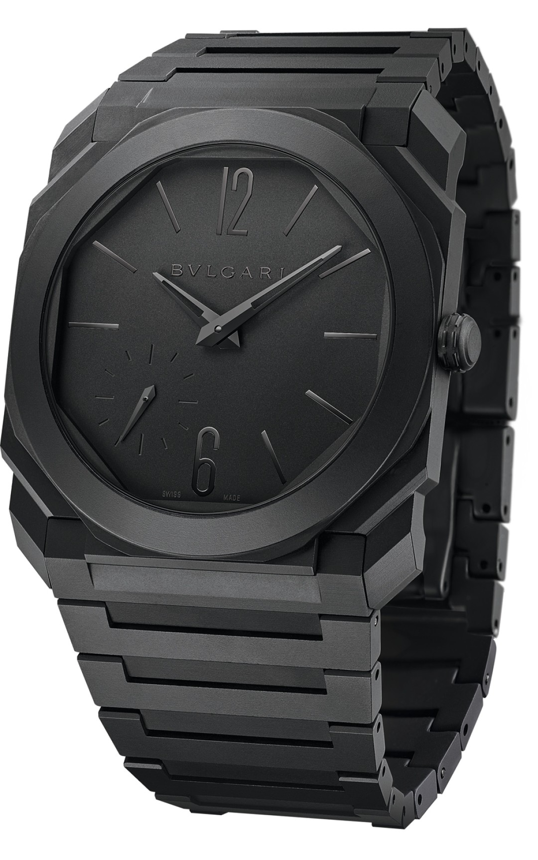Механизм с автоподзаводом, платиновым ротором и запасом хода в 60 часов BVL138 Finissimo настолько тонкий, что облегающий его керамический корпус занимает в высоту всего 5,5 миллиметров — и удачно заляжет под манжетой игрока в покер.