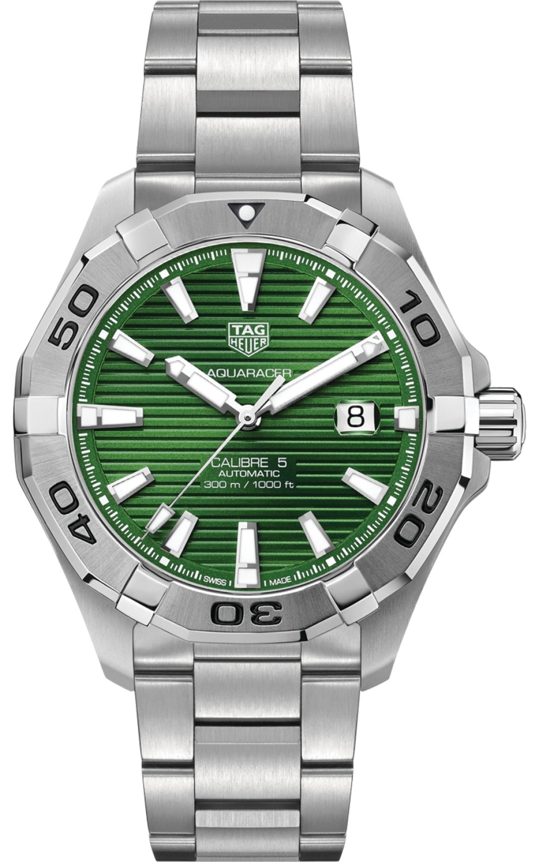 Зеленый ребристый циферблат — как подернутый водорослями деревянный причал, с которого яхтсмены шагают на парусники. Отметить финал регаты можно прыжком с борта: автоматический механизм снабжен шестью функциями погружения и водонепроницаемостью до 300 метров.