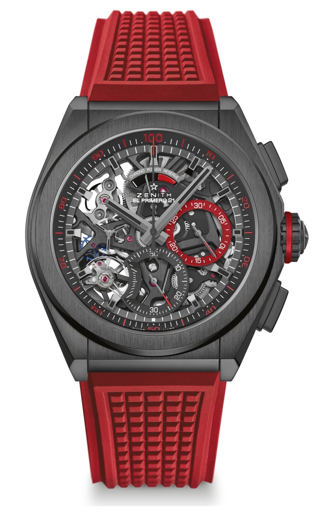 Часы со сверхточным механизмом El Primero 21, который способен замерять сотые доли секунды, — явление сами по себе. А расцвеченные алыми всполохами на открытом циферблате и заводной головке, они превращаются в редкий аукционный лот сразу после выпуска с мануфактуры. Охоту коллекционеры откроют в России: все 35 хронографов лимитированной серии приехали именно к нам. В комплекте с часами три сменных ремешка: черный и красный каучуковый, а также из черной кожи аллигатора с контрастной прострочкой.