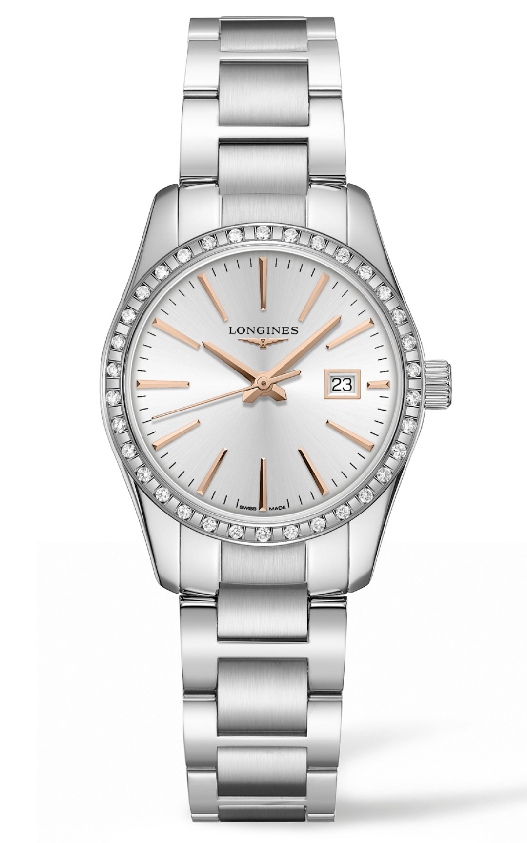 Часовой биколор в новом сезоне уже не тот (а круче!). Вместо привычного чередования на браслете золотых и стальных звеньев у новых женских трехстрелочников полностью стальное «тело» размечено линиями из розового золота. И хотя мастера из Сент-Имье прошили безель 34-миллиметровых часов бриллиантами, они уверены, что Conquest Classic впишется и в слалом-трассу: олимпийская чемпионка по горным лыжам Микаэла Шиффрин носит такие на тренировки. А мы, пожалуй, возьмем на apres-ski. Кроме циферблатов синего, черного и серебристого цветов с узором «солнечные лучи», есть и перламутровые.