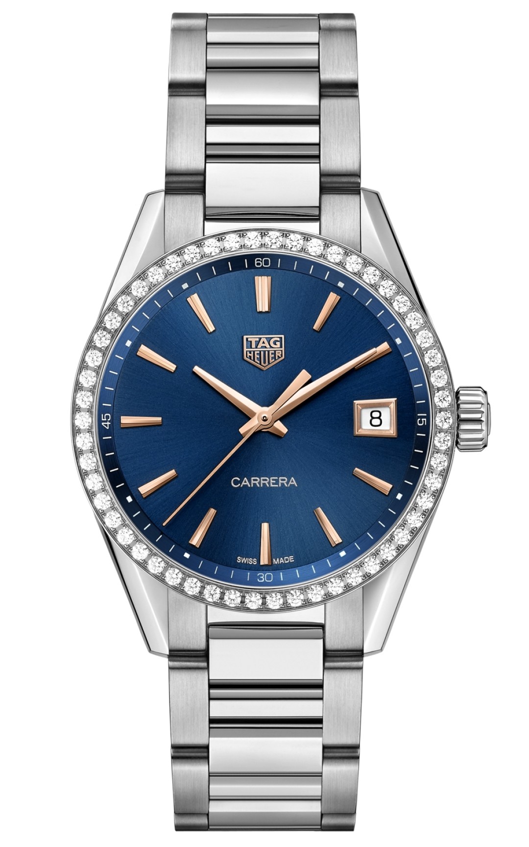 На другом склоне Юрских гор, в недрах мануфактуры в Ла-Шо-де-Фон, созрел симметричный ответ: 36-миллиметровый стальной корпус обновленных часов Carrera Lady припорошен 54 бриллиантами, а время на синем, сером, черном, фиолетовом или перламутровом циферблате показывают покрытые розовым золотом стрелки. К испытаниям в естественной среде они тоже готовы: время спуска с «черной трассы» замеряет бегущая по секундной шкале на фланце стрелка, а водонепроницаемость до ста метров даст спокойно обдумать свою технику в сугробе. От прежних Carrera Lady новенькие отличает еще и трапециевидное окошко индикации даты вместо прямоугольного.