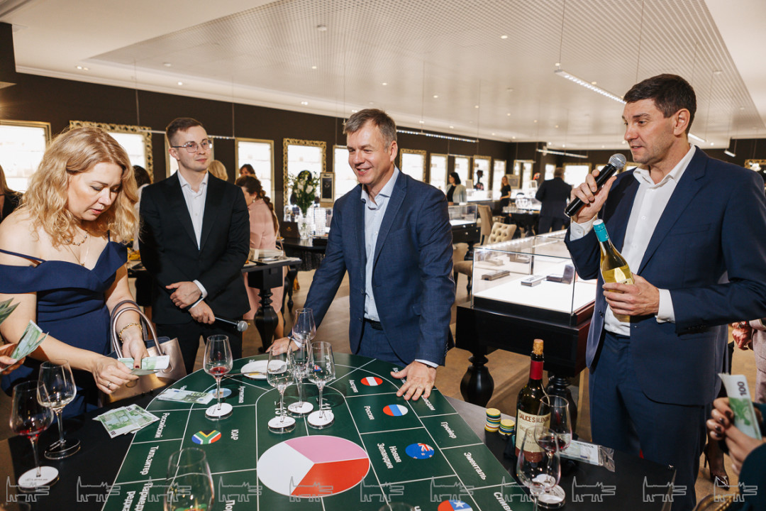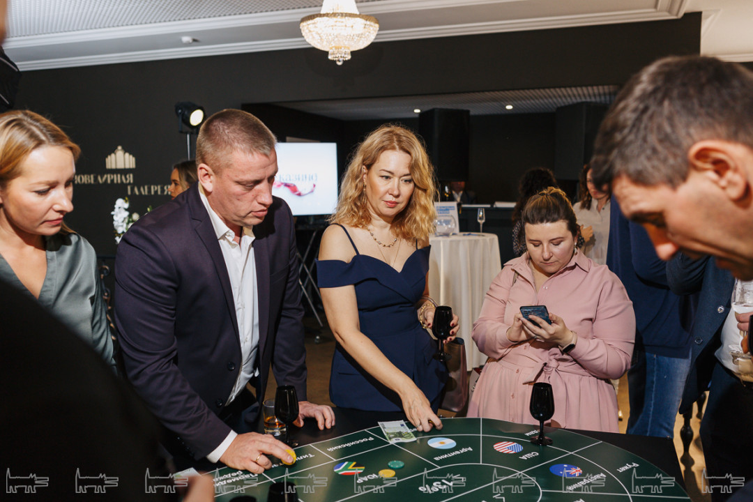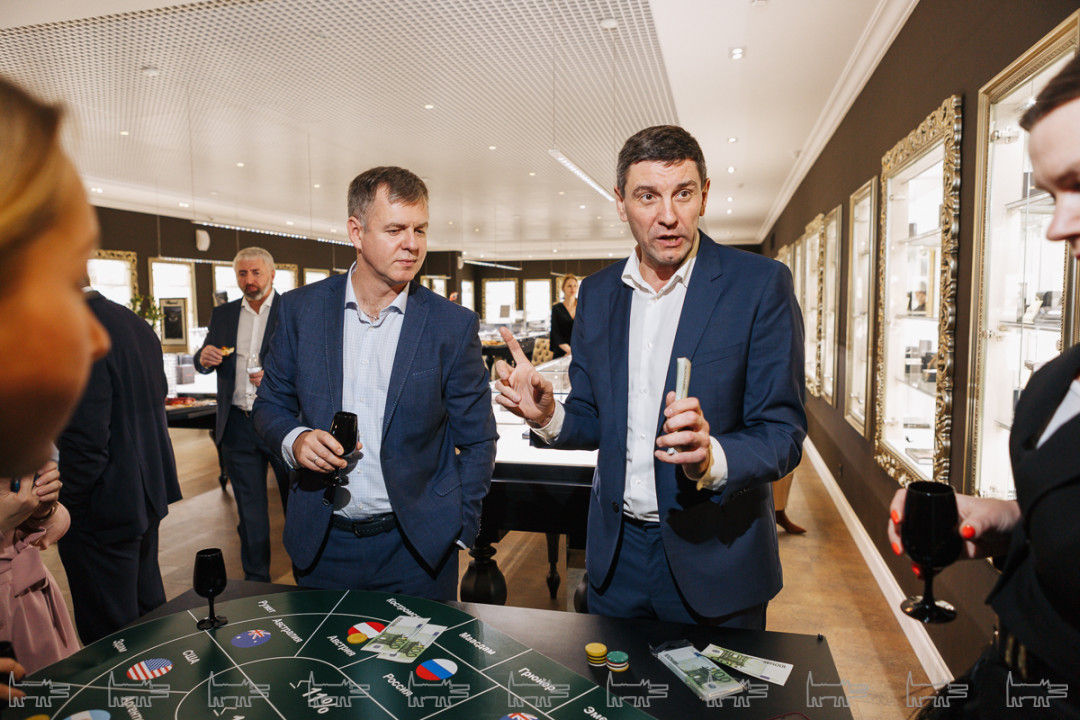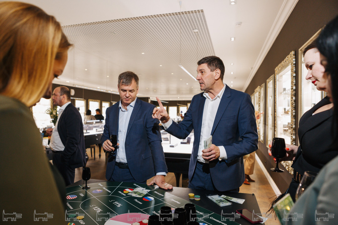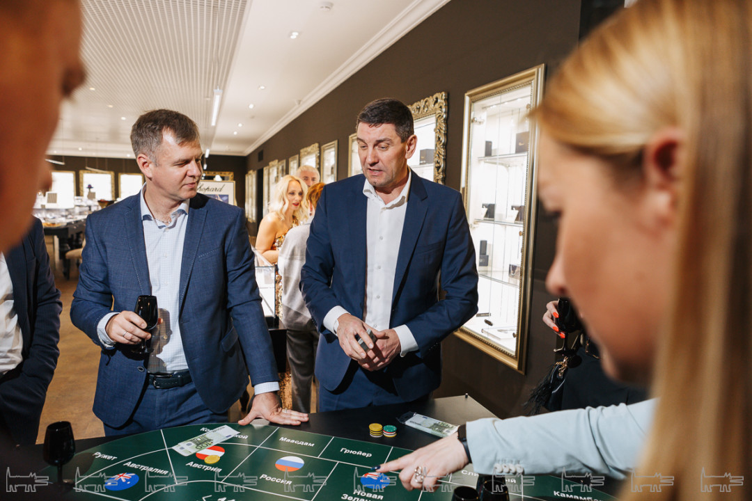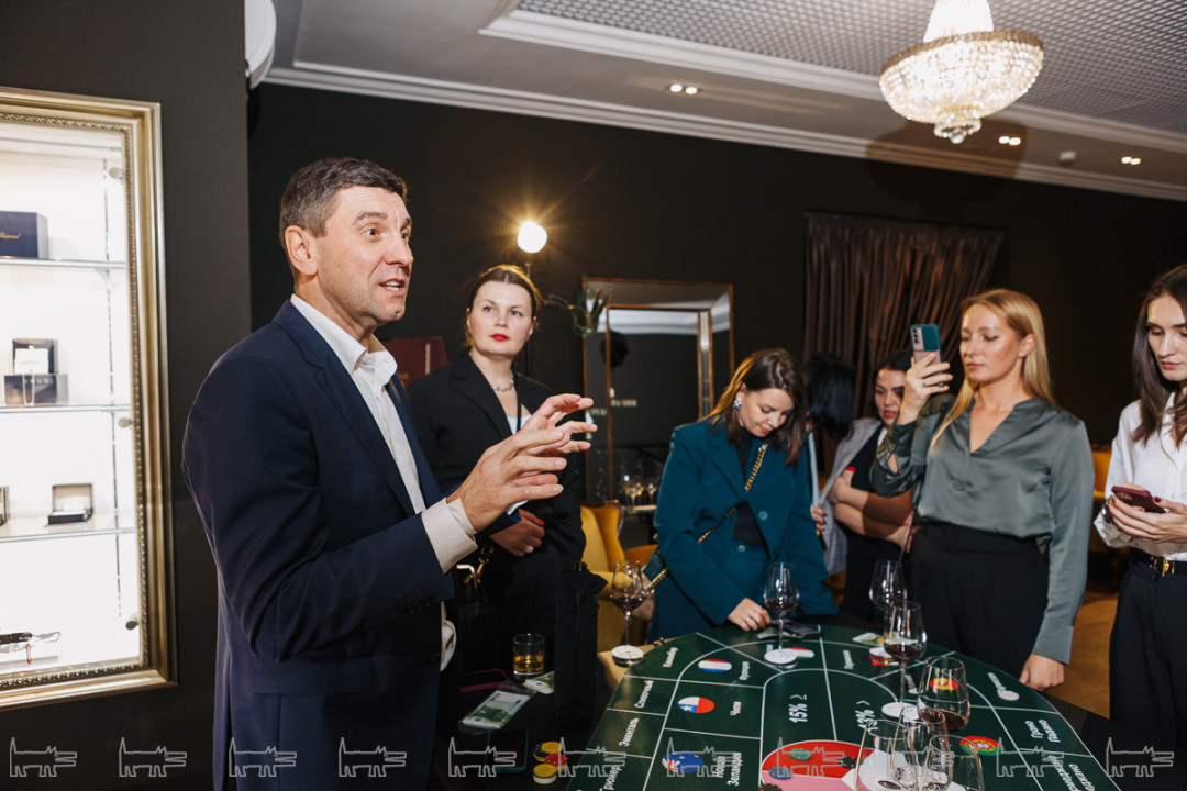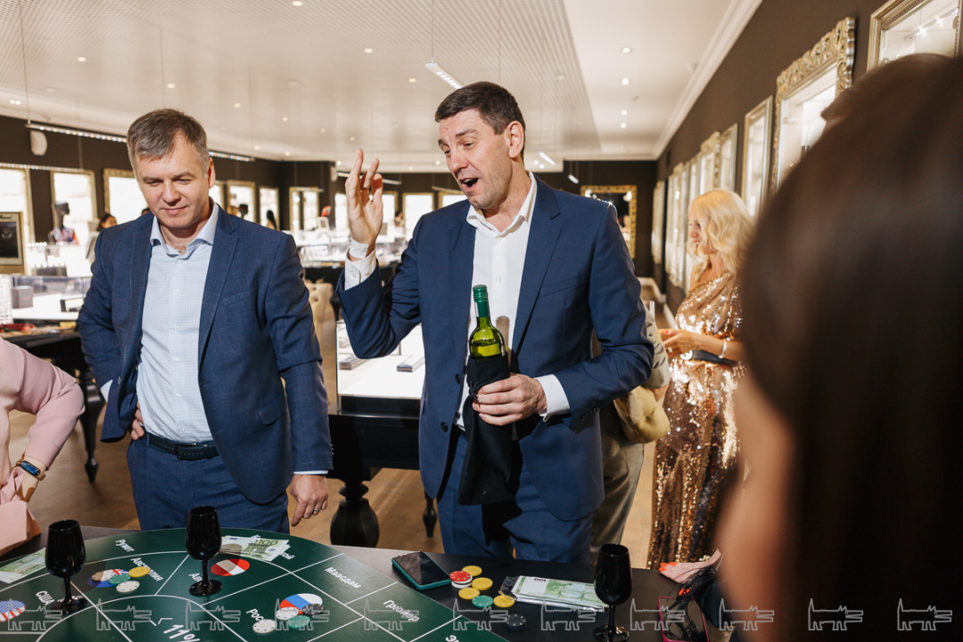 На вечере состоялась презентация ювелирных украшения модного дома Chopard от ювелирного стилиста Марины Крайкиной. Вечер в формате «Винное казино» не оставил равнодушными собравшихся гостей. Сомелье Евгений Валеев устроил дегустацию вин в стилизованной под рулетку игре с фишками, крупье и ставками. Также все гости смогли оценить флагманский полноприводный кроссовер Lexus RX 300. В атмосфере праздника и роскоши участников вечеринки радовали комплиментами и подарками от партнеров, авторскими угощениями от шеф-повара ресторана «ГРОЗА». За настроение гостей отвечал Никита Колотушкин. Радушные и гостеприимные хозяева Ювелирной галереи Александр и Эллада создали душевную атмосферу, дарили щедрые презенты и даже успевали принимать не менее щедрые подарки от своих друзей.