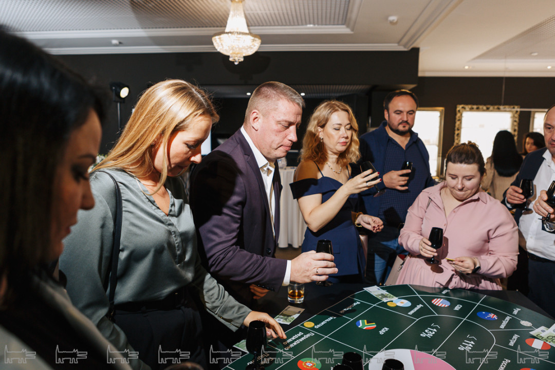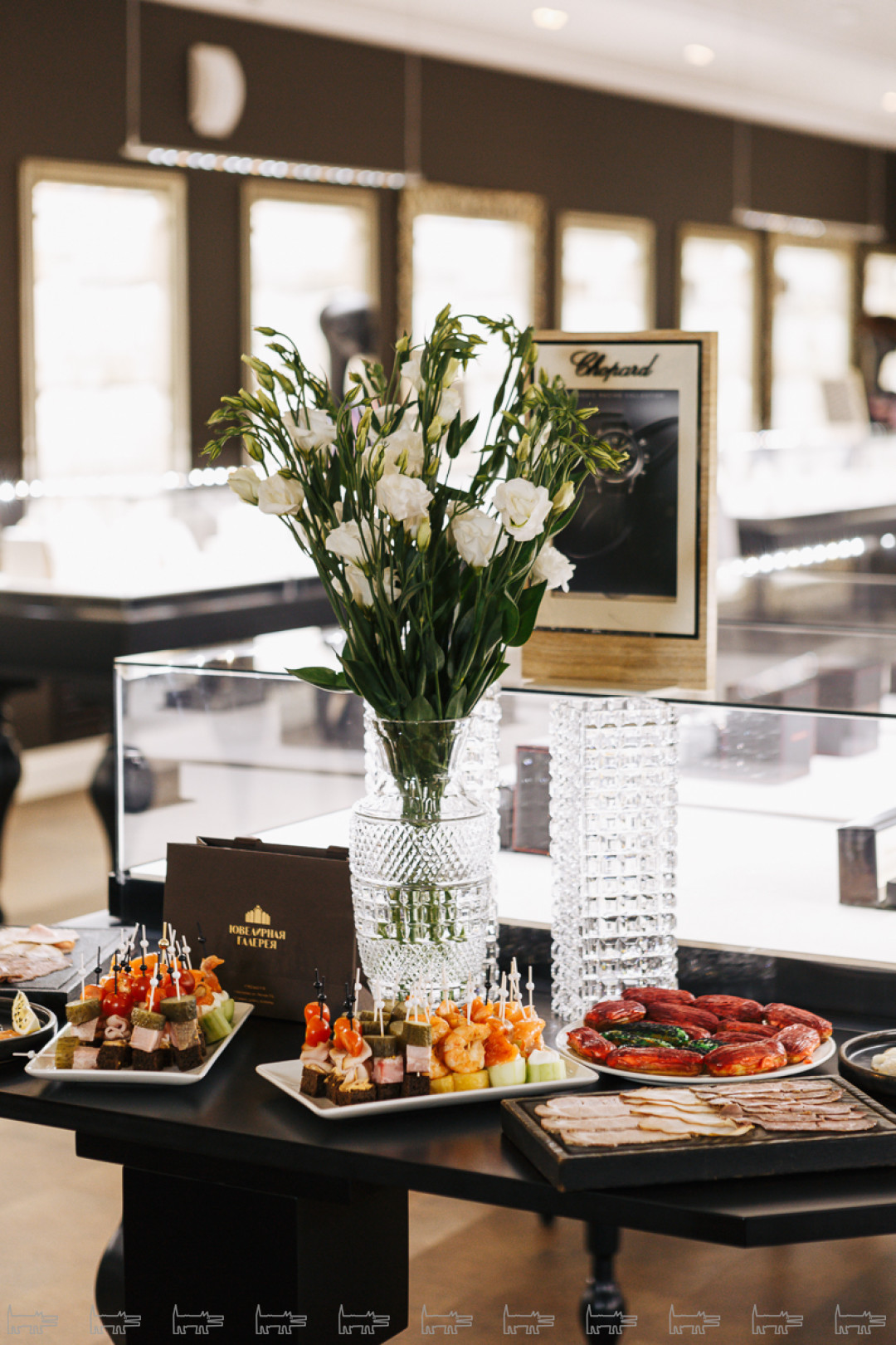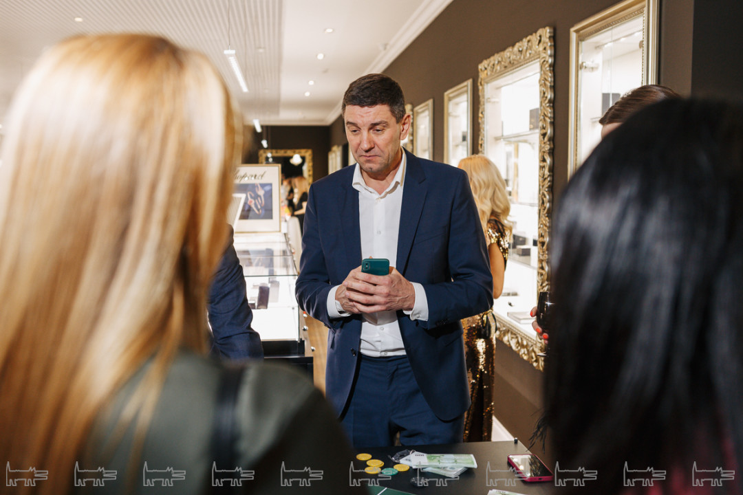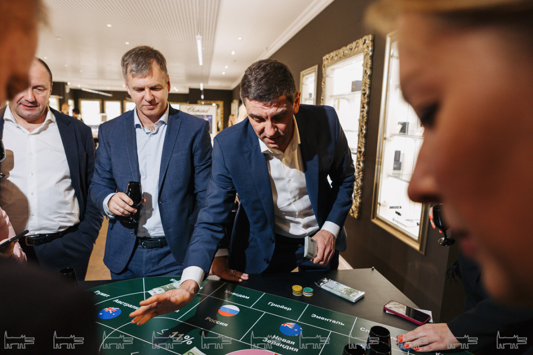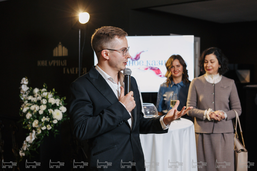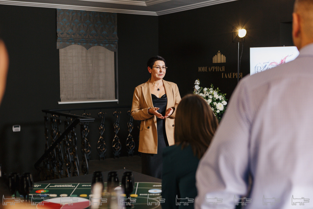 На вечере состоялась презентация ювелирных украшения модного дома Chopard от ювелирного стилиста Марины Крайкиной. Вечер в формате «Винное казино» не оставил равнодушными собравшихся гостей. Сомелье Евгений Валеев устроил дегустацию вин в стилизованной под рулетку игре с фишками, крупье и ставками. Также все гости смогли оценить флагманский полноприводный кроссовер Lexus RX 300. В атмосфере праздника и роскоши участников вечеринки радовали комплиментами и подарками от партнеров, авторскими угощениями от шеф-повара ресторана «ГРОЗА». За настроение гостей отвечал Никита Колотушкин. Радушные и гостеприимные хозяева Ювелирной галереи Александр и Эллада создали душевную атмосферу, дарили щедрые презенты и даже успевали принимать не менее щедрые подарки от своих друзей.
