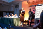 Церемония вручения премии «Национальный бестселлер» прошла в Зимнем саду отеля «Астория». В состав жюри вошли: заведующий отделом новейших течений Государственного Русского музея Александр Боровский, писатель Сергей Жадан, публицист Константин Крылов, исполнительный вице-президент кинокомпании «Централ Партнершип» Злата Полищук и телеведущая Ника Стрижак. Ведущими вечера стали актриса БДТ Полина Толстун и критик Артемий Троицкий. Главный приз достался загадочной писательнице под псевдонимом Фигль-Мигль, автору книги «Волки и медведи», которая впервые появилась перед публикой, хоть и скрыла лицо за темными стеклами очков.