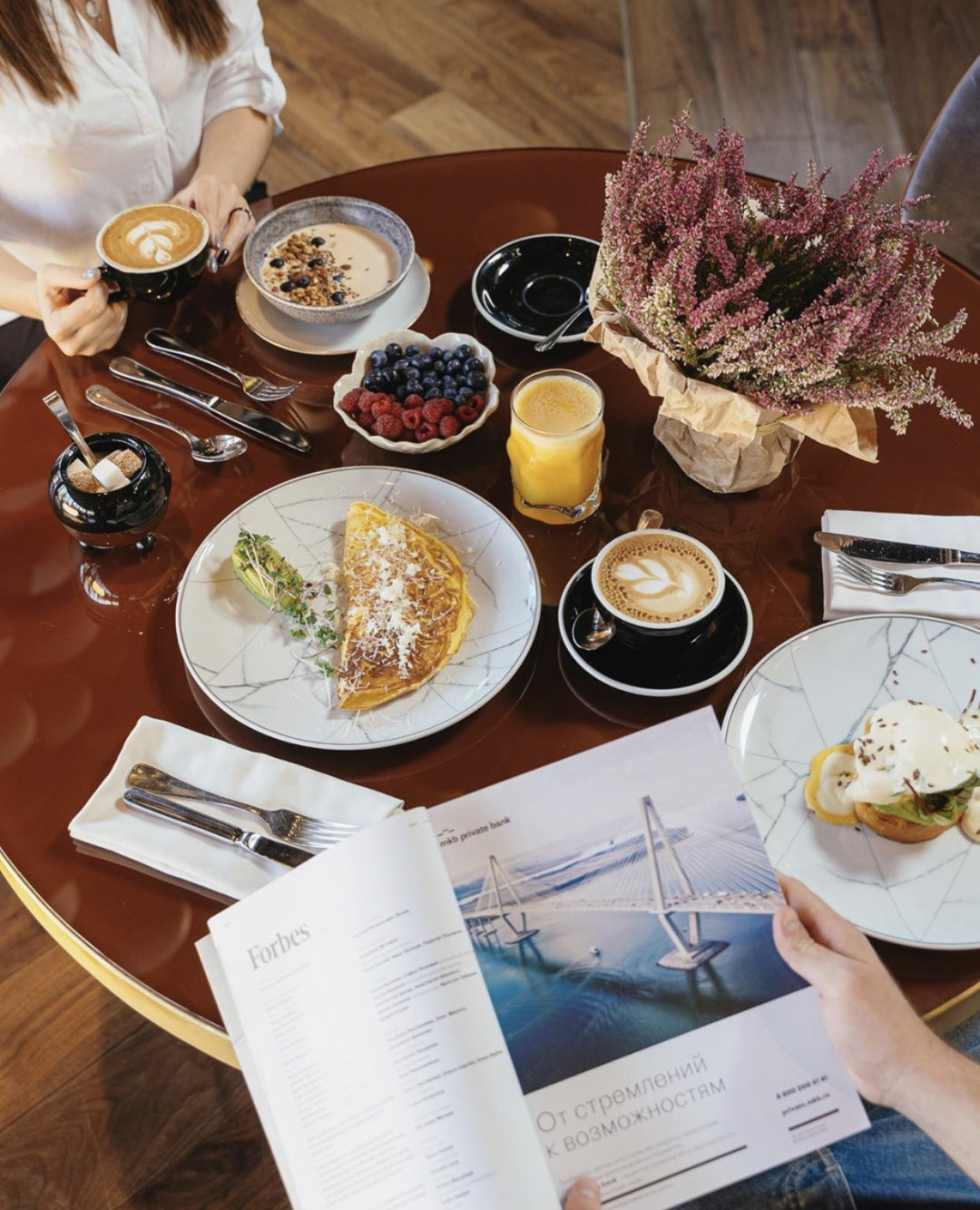 Это место идеально подойдёт для неторопливых, уютных завтраков за интересной книгой или разговором с друзьями: камерное пространство, большие окна и общая атмосфера расслабленности и умиротворенности. Кроме того, завтракать здесь можно весь день — у всех утро начинается в разное время суток. Согласны?