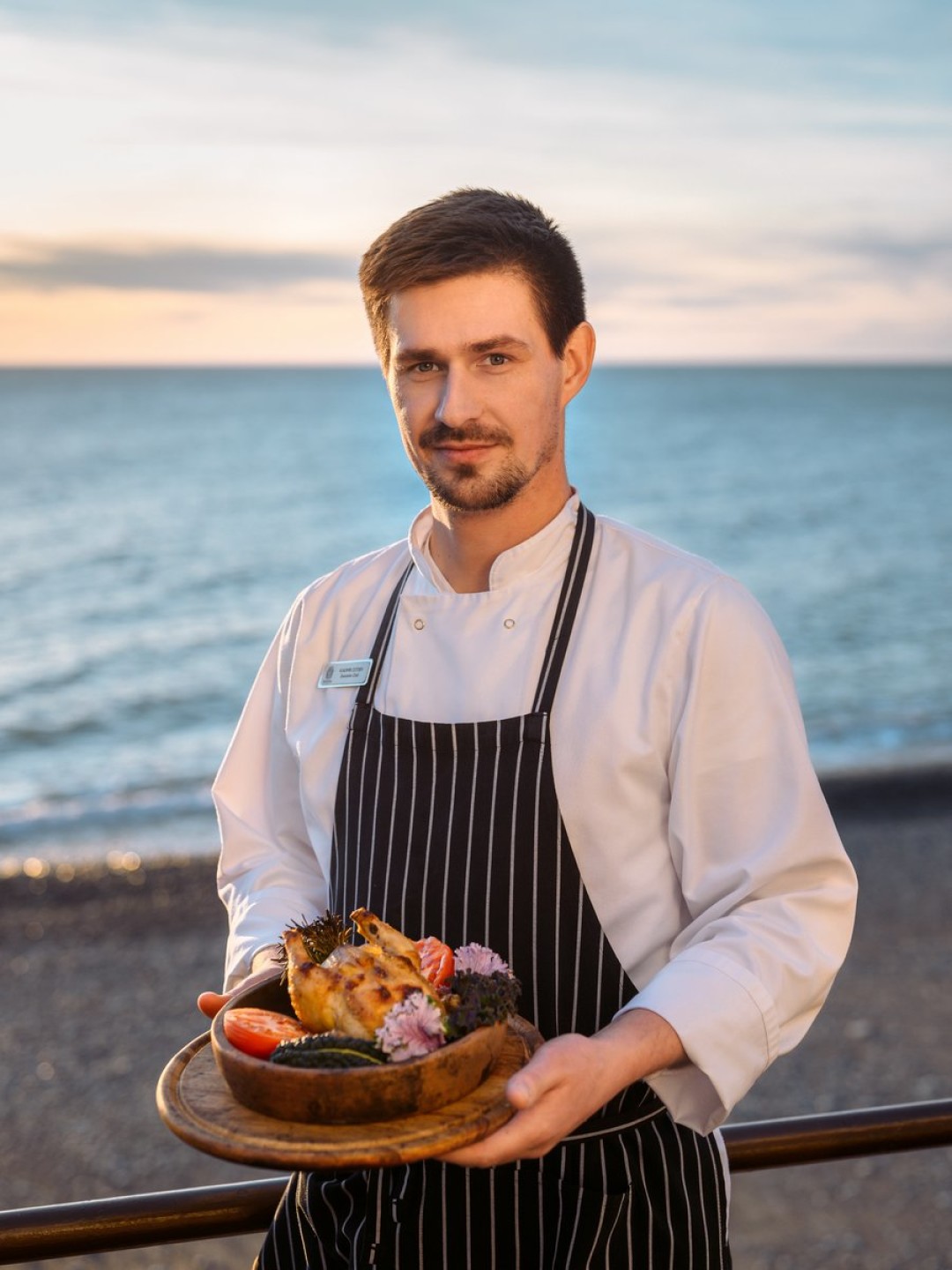 В его ведении кухни пяти ресторанов и трех баров, где используют экологически чистые овощи, фрукты, зелень из собственного сада.
