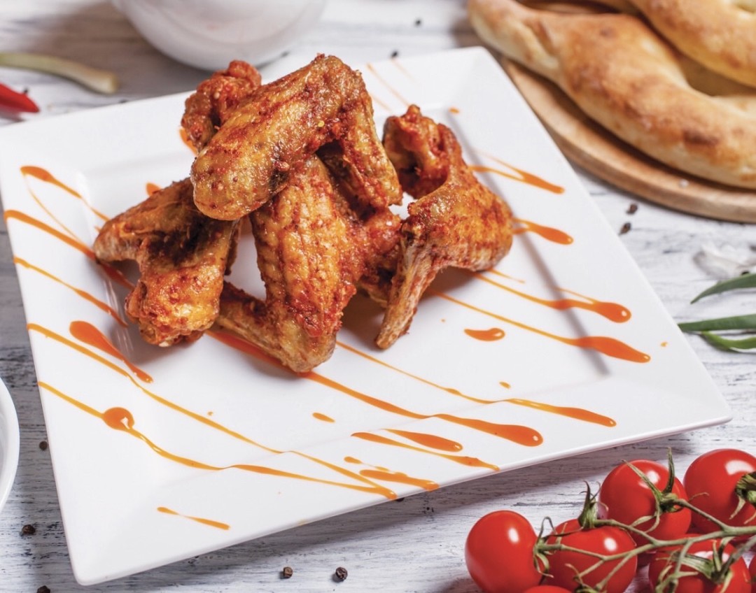 Чтобы приготовить цыпленка Тапака, мясо маринуют в домашней острой аджике и сочетают с печеным томатом.