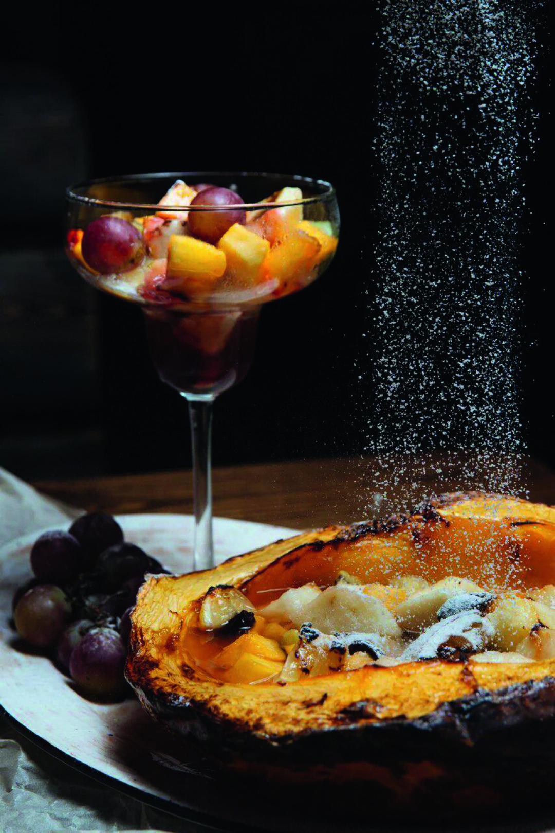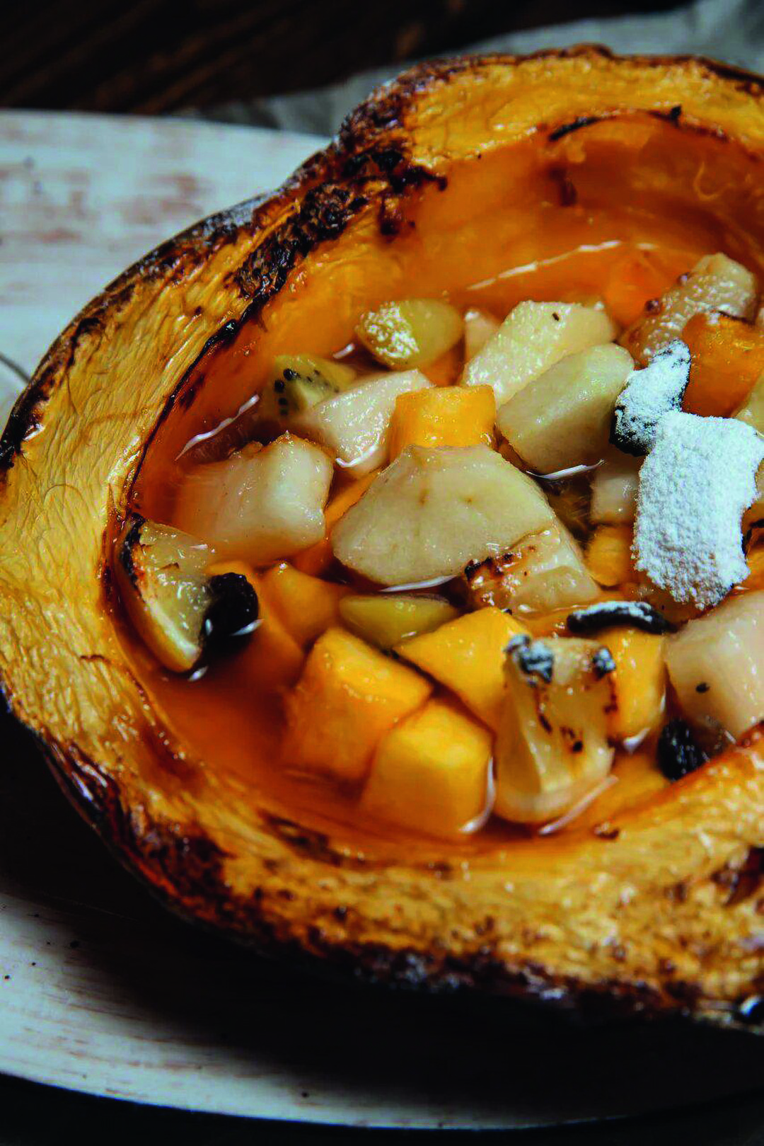 Тыква — не только вкусный, но и чрезвычайно полезный для здоровья продукт. Поэтому новинка осеннего предложения — печеная тыква — обещает набрать особую популярность среди любителей здорового образа жизни. А если добавить к этому заказу еще одну новинку — десерт с яблоком, грушей, киви и апельсином, то вы подарите организму феерический праздник. Да что там говорить! Это не просто полезно, а потрясающе вкусно и красиво! Эстеты будут в восторге.