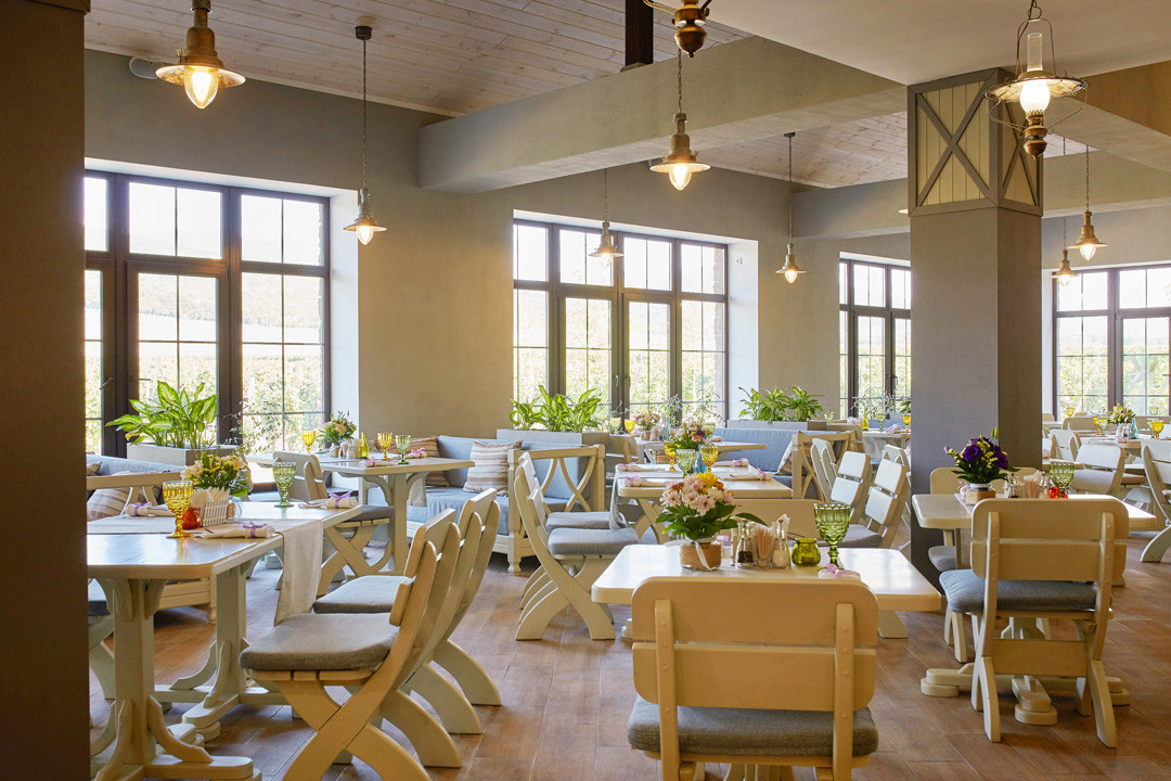 В этом семейном загородном комплексе ждут как одиноких путешественников, так и большие компании. Ресторан черноморской кухни с видом на виноградники подходит как для уютных вечеров, так и для больших торжеств. Акцент в меню сделан на локальные продукты и их сочетание с благородными напитками местного терруара. Если ужин затянется, то можно остановиться в гостинице комплекса, в одном из восьми номеров, чтобы с утра проснуться и распахнуть окна на залитый солнцем двор и виноградник.