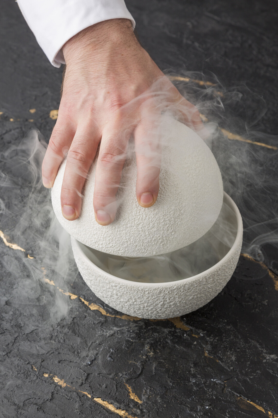 Начать дегустацию вам предложат с мягкой бриоши в черном чесноке; необычный переход вкусов от горьковатого к сладкому отыгрывает самаркандский изюм, вымоченный в роме, а за сливочность позиции отвечает террин из фуа-гра. Далее переходите к тонко нарезанной байкальской нельме с добавлением масла укропа и зеленого лука. Соус из бузины дополнит ее цветочным ароматом, а ферментированный крыжовник — яркой, но ненавязчивой кислинкой. Третьим курсом подается камчатский краб в бульоне из водорослей ламинарии, дань лету в этом блюде отдают моченая черешня и маринованная крапива. Следующим перед вами предстанет признанный хит ресторана — карельский белый гриб. Здесь стоит оставить гастрономическую интригу, чтобы вы могли составить собственное впечатление. Перед шестым курсом предстоит нелегкий выбор: нежный байкальский омуль, приготовленный по технологии су-вид, с пикантным кремом из черемши и ферментированными томатами черри или сочная вырезка алтайской говядины, подающаяся с молодым зеленым горошком и спаржей. После вам предложат предесерт — сорбет из лесных ягод с хрустящей лавандовой меренгой и сезонными ягодами, чтобы подготовить ваши вкусовые рецепторы к финальной подаче. Блистательным завершением дегустации станет мороженое из фермерской сметаны с освежающим яблочным сорбетом, текстуру которого отлично дополняет изумрудная фисташка и легкий сливочный крем. Десерты в MINERALS представляет шеф-кондитер Андрей Баглай. Остаться равнодушным к его творениям не получится, даже если в них используются «нетипичные», как может показаться, ингредиенты: лук, черные лисички, томаты… Стремление Андрея к совершенству, его смелые разработки и комбинации продуктов удивят даже самого искушенного гостя.