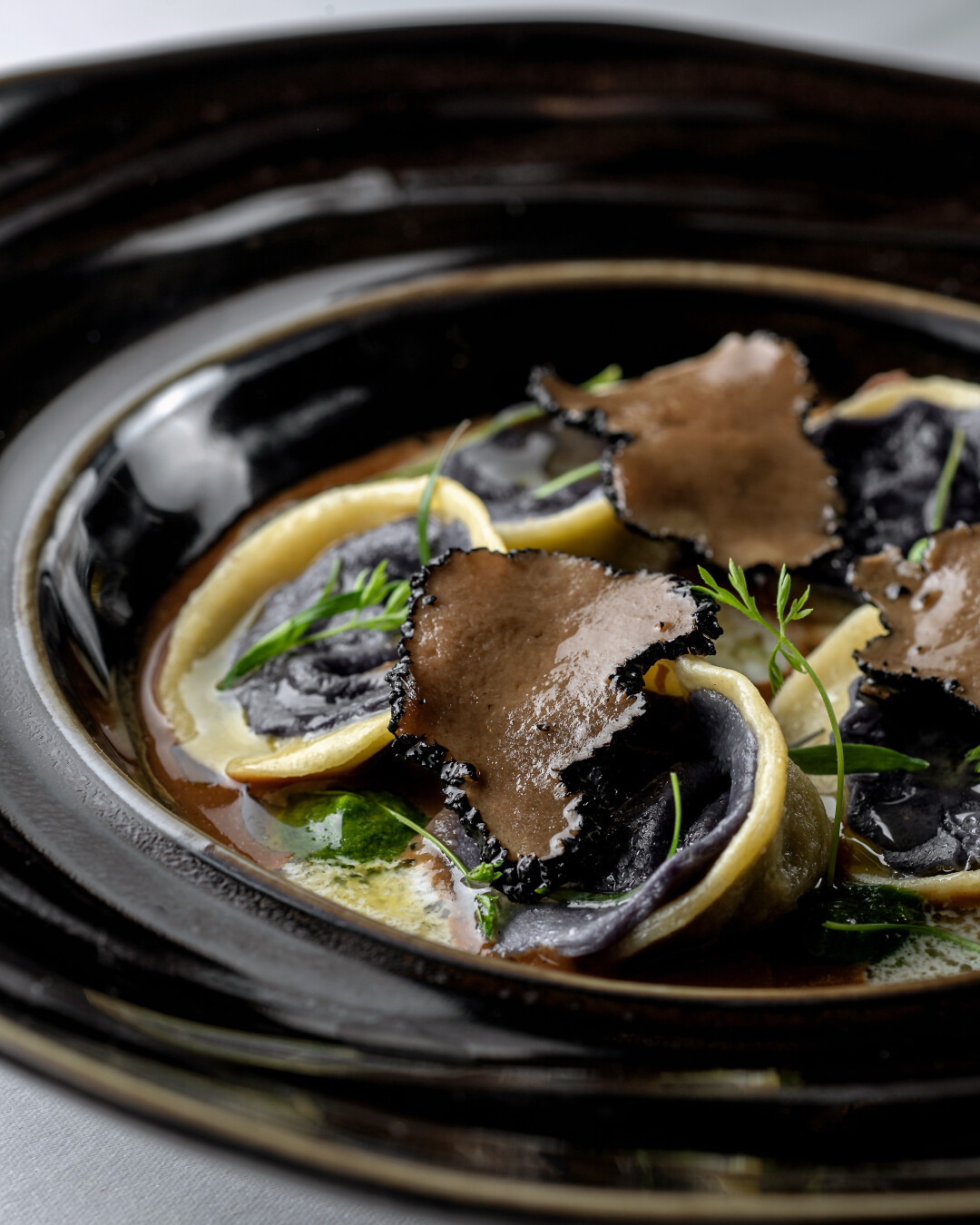 Основные позиции начинаем пробовать с пирога, и да — конечно, рыбного со сливочным соусом и красной икрой. Еще из знакомого, но переизобретенного — пельмени с бычьими хвостами и трюфельным картофелем. Кто-то сказал бы: «почти как у бабушки», а мы бы добавили: у бабушки, которая входит в топ лучших шеф-поваров Юга России. Радикально завершить знакомство с обновленным меню рекомендуем, попробовав филе горбыля с хрустящим сельдереем и соусом.