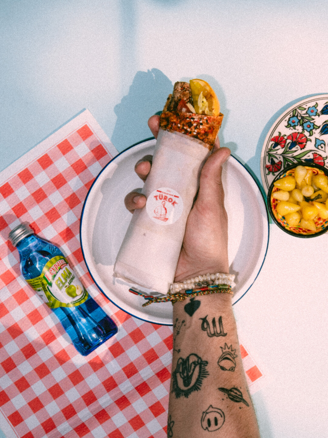 Акцент в меню — на два кебаба: балык дурум со скумбрией и соусом наршараб; кефте дурум с говяжьими котлетками гриль, фирменным томатным соусом и перцем гриль. Все они закручиваются в лаваш, дополняются миксом специй и овощами. Есть и вегетарианский вариант турецких пикантных лепешек гезлеме. В них микс из 18 трав, а подают их с фирменным томатным соусом «Стамбул» и сливочным маслом с заатаром (ближневосточные травы). Сладких позиций пока две: бублик симит с кунжутом и шоколадной пастой и каймак с медом. Помимо классики, в меню напитков рекомендуем обратить внимание на турецкий чай из дровяного самовара, майкопский айран, турецкие лимонады, фруктовую воду, кофе (угадайте, как?) по-турецки и шалгам (кислый напиток из репы). Еще один бонус от команды проекта — еженедельные тематические спешлы в меню и классные мероприятия в уик-энды. В целях развития краснодарской гастрономической культуры и, конечно, удовольствия гостей для.