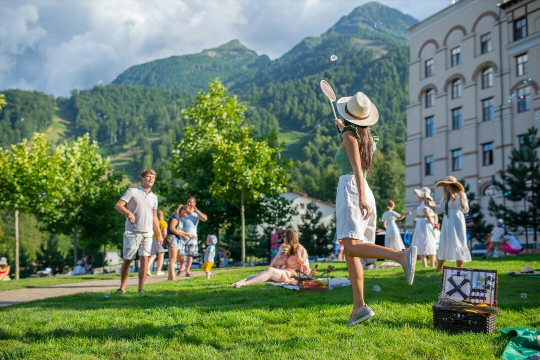 Френдли-вайб будут поддерживать активные игры на траве. Возможность новых интересных знакомств объявляется вполне вероятной, так что запасайтесь санскрином, а хорошее настроение и компания будут ждать вас в горах! Кстати, если пикник оказался для вас спонтанной идеей, то не переживайте. Корзину со столовыми приборами на две персоны, пледы, фрисби и бадминтон — можно взять в аренду прямо на месте.