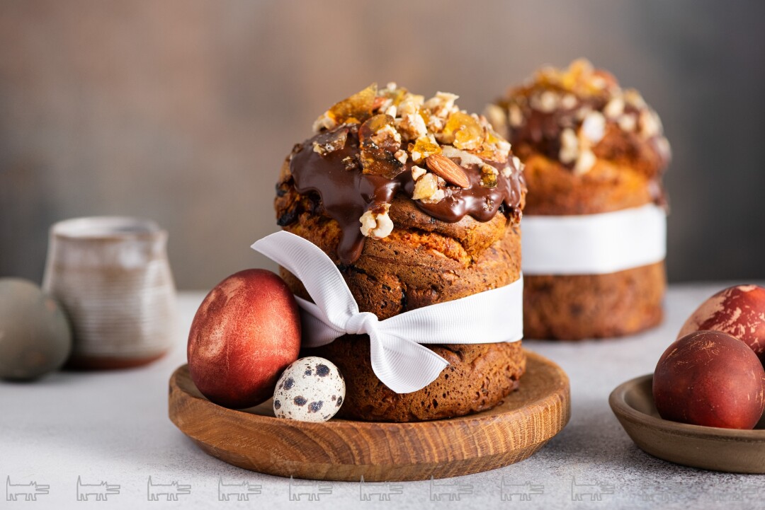 8.  Внизу духовки разместите емкость с холодной водой для создания влажной среды. Выпекайте куличи при температуре 160С 35-40 минут.