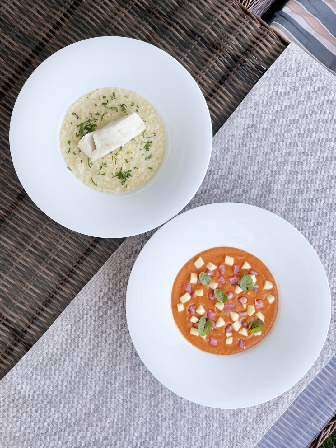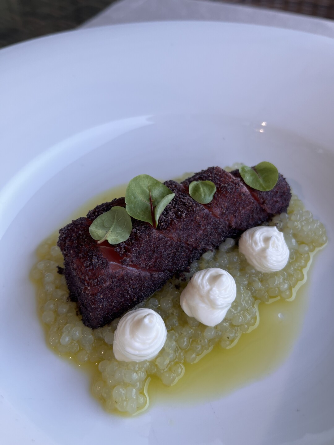 Экзотический холодный суп сальморехо с тунцом и манго придется как раз кстати. Легкий вайб продолжается в категории основных блюд. Гурманы особенно оценят неординарное сочетание вкусов в позиции с угольным тунцом, тапиокой и соусом из авокадо. Как альтернатива выступает лойн трески с орзо ризотто и козьим сыром.