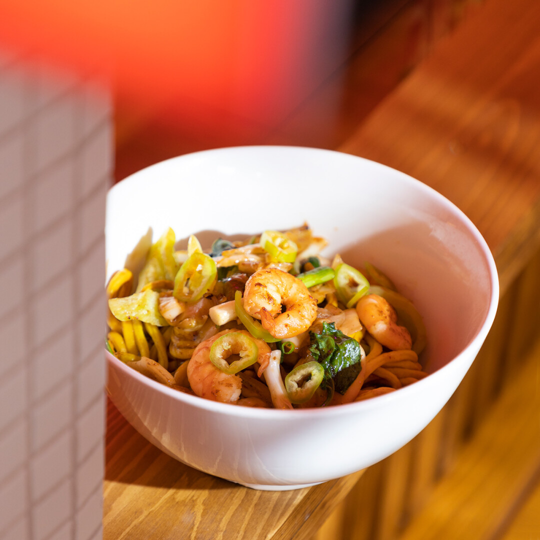 Второй этаж был вынужденной необходимостью: из-за большого трафика гости перестали помещаться во флагманском заведении Tori Ramen и зале рис-бара Tori Nori. Поэтому я решил изменить концепцию первого уровня, превратив его в классическую раменную. А второй этаж мы с командой создали по принципу азиатского рынка с большим количеством технически сложных блюд. В рамках одноэтажного заведения организовать все это было бы невозможно, маленькая кухня просто не вместила бы такого количества техники и поваров. На втором этаже у нас четыре корнера: карри, где основной акцент сделан на блюда из риса и карри из разных стран (индийский, японский, тайский, пакистанский, бангладешский!); корнер якитори с витриной, на которой расположились готовые шпажки с рыбой, мясом и морепродуктами. Гость сам выбирает понравившийся «шашлычок», а наш повар на открытой кухне готовит блюдо на его глазах; корнер вок энд нудл с еще большим количеством вариантов лапши, различными ингредиентами и соусами; дамплинг-корнер с азиатскими пельмешками на любой вкус и цвет.