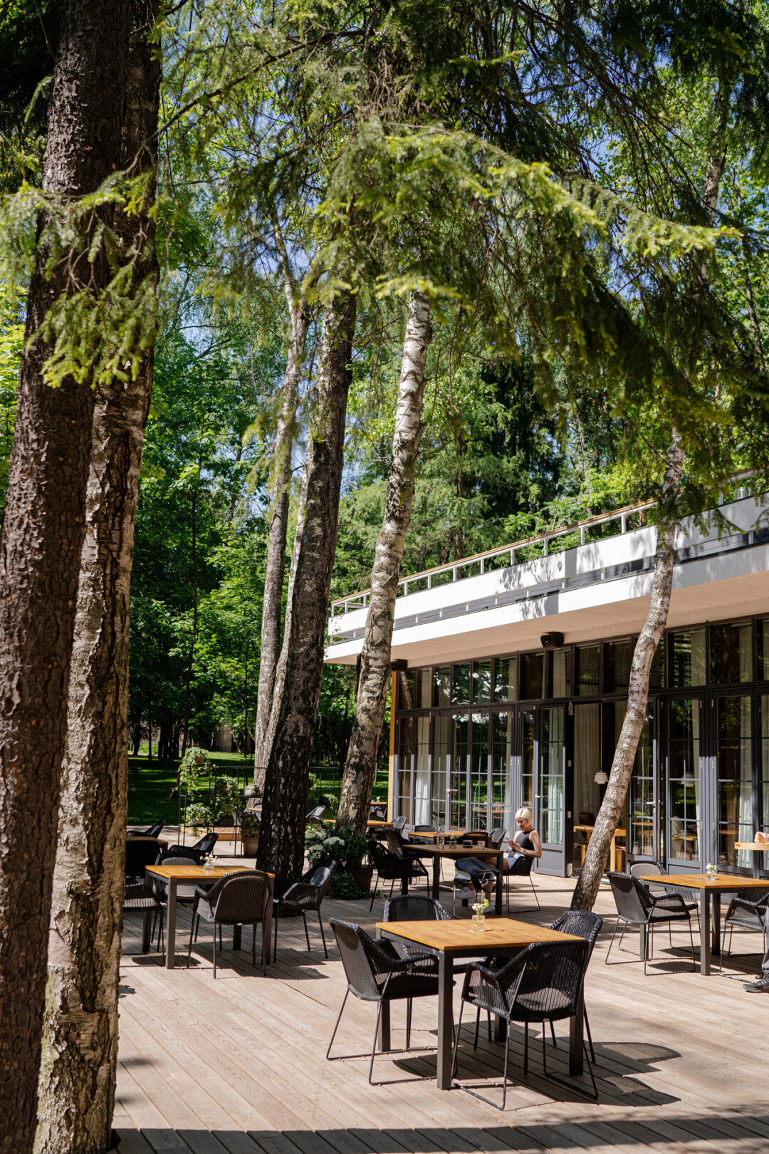 После бранча или ужина рекомендуем просторную веранду на 80 посадочных мест — это вторая, но не менее важная часть ресторана. Веранда встроена в лесную поляну Дома творчества и окружена вековыми елями, березами и кустами черной смородины. Тут царит дачная атмосфера, которой всегда славился городок писателей. Поэтому в ресторане устраивают традиционные чаепития — еще одна дачная история, которую команда проекта не могла проигнорировать. Для них были созданы четыре авторских литературных купажа: «Мятный Лев», «Сны Достоевского», «Вишневый сад», «Русский караван». Для любителей кофе в меню бара — большой выбор напитков на зерне от московских обжарщиков Rockets Coffee, включая бронекофе. А в ближайшее время меню бара дополнит выбор авторских русских тихих и игристых напитков.