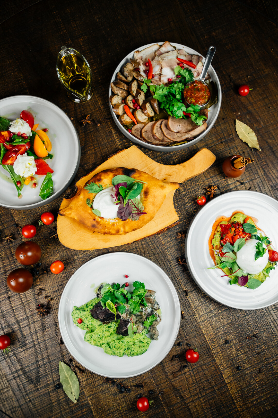 За уютными и теплыми блюдами идем сразу на летнюю террасу ресторана, где радуют подачей мясного гриль-меню. Да, пока холода окончательно не захватили верхушки Кавказских гор, стоит больше времени проводить на свежем воздухе, поэтому наш выбор локации считаем обоснованным. Кстати, пробовать рекомендуем не только блюда из мяса. Очень хорош фирменный каштановый суп с гребешком и паштет из каштана с белыми грибами. Из традиционно локального радует черноморский рапан, запеченный с сулугуни и белыми грибами, жареная черноморская барабуля и адлерская форель на гриле. И, конечно, без национального никуда, поэтому must taste* хачапури, шашлыки и хинкали.