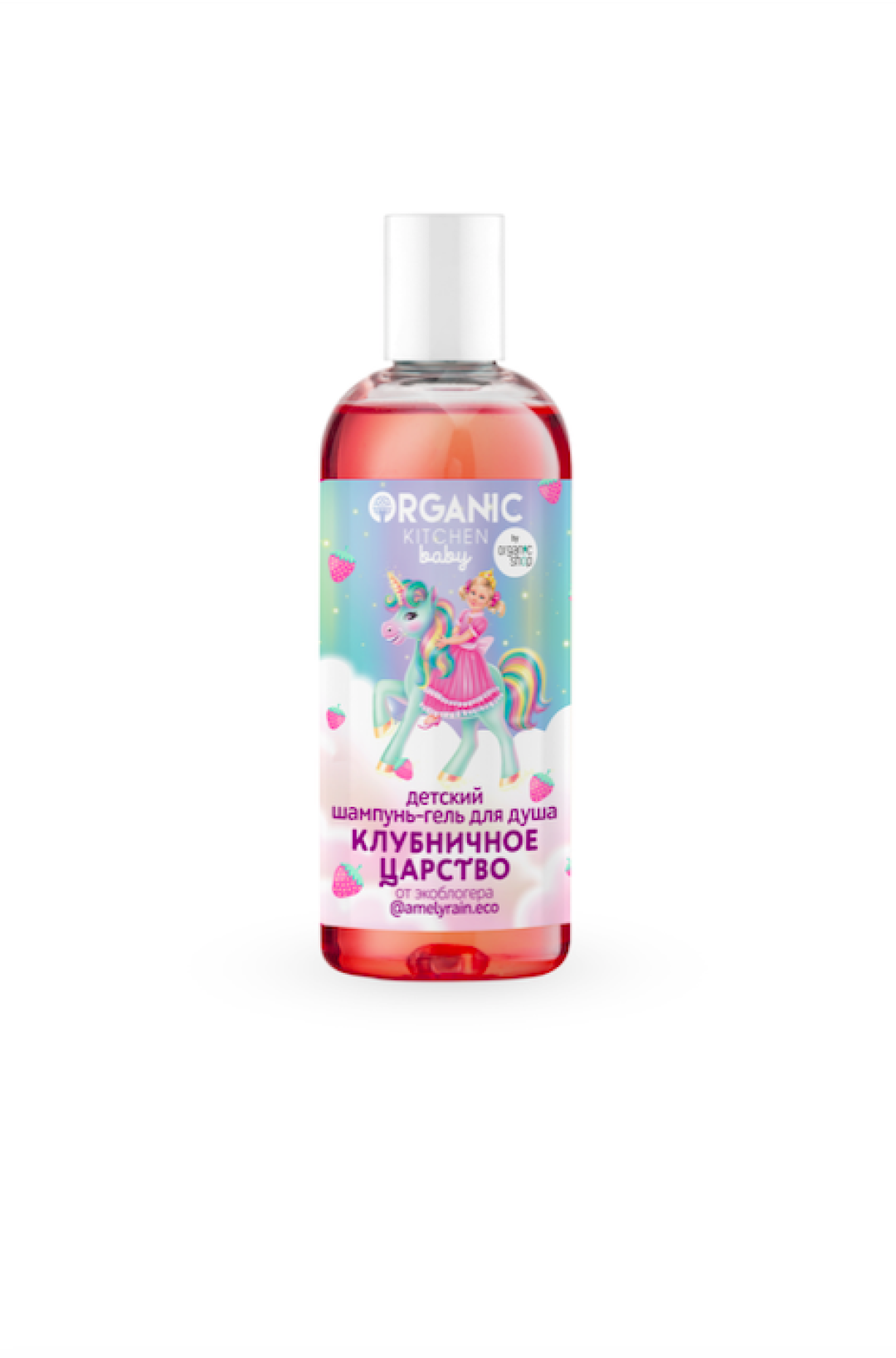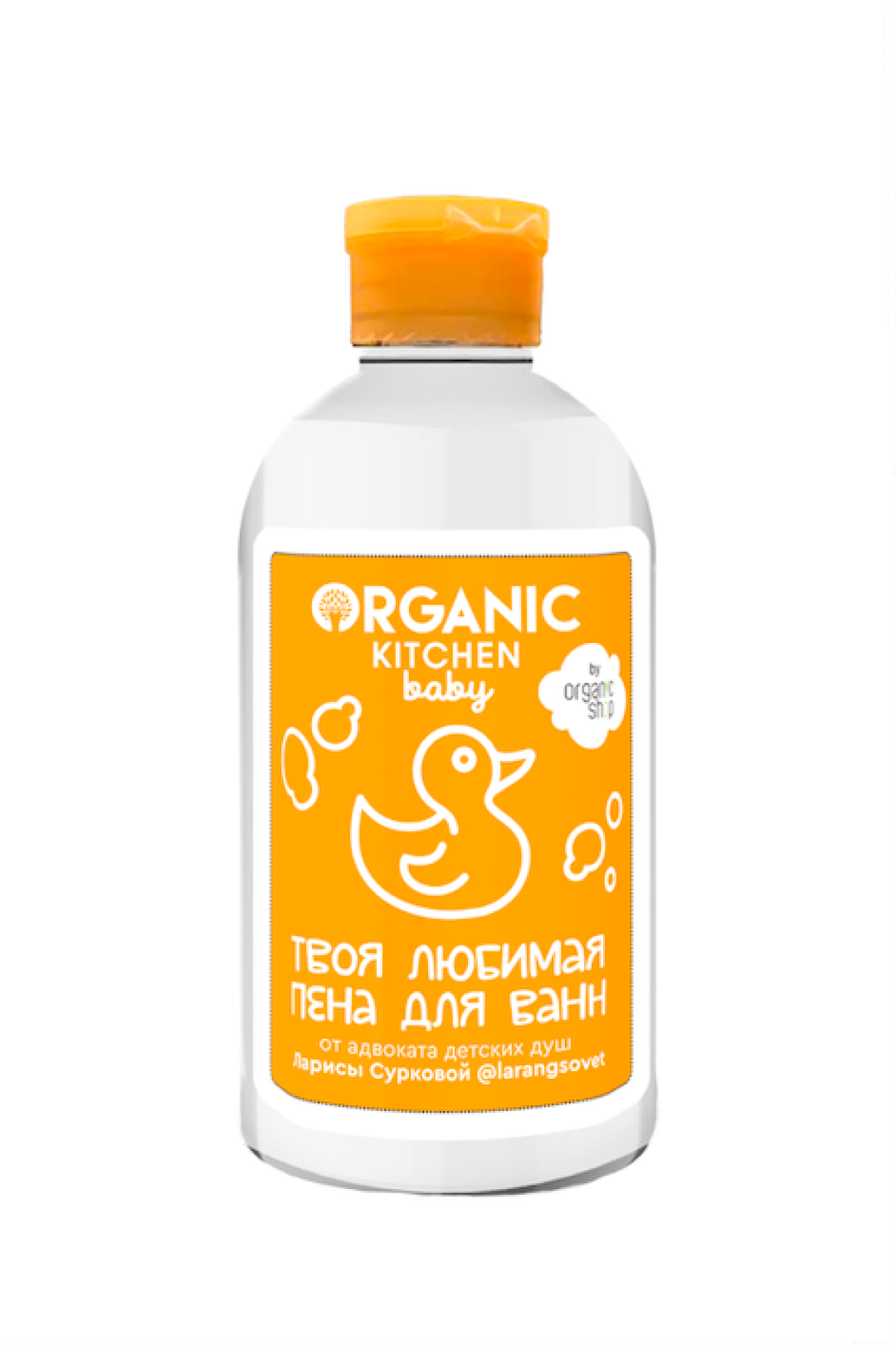 Новинка коллекции — линейка детских продуктов Organic Kitchen Baby, состоящая из трех средств: детского очищающего крема Mama's Kiss от Айзы Долматовой, шампуня-геля для душа «Клубничное царство» от экоблогера Екатерины Amelyrain и детской пены для ванн «Твоя любимая» от детского психолога Ларисы Сурковой.