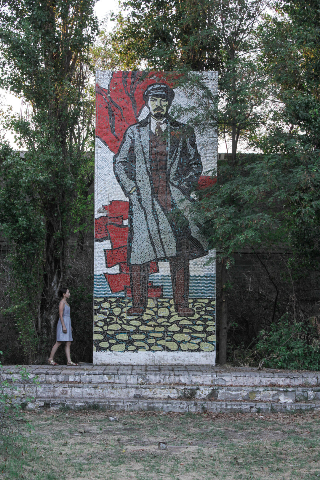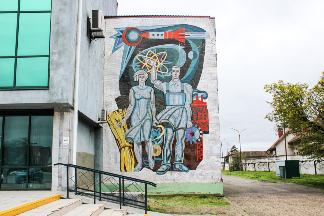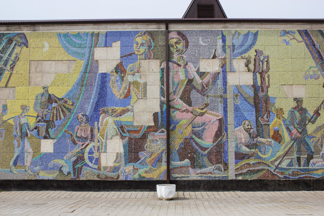 Куда без образов Ленина в материале о советских мозаиках? Правильно, никуда. Эта мозаика одна из немногих в Краснодарском крае, на которой изображен один лишь Ленин. Похожих я не находил. Разве что у парка «Ривьера» в Сочи. Но тут меня очаровывает, скорее, атмосфера локации и то, как органично и по-философски сегодня смотрится в ней само панно. Мозаика с Лениным расположена на площади, где раньше собирались пионеры, наверняка с трепетом и особым вниманием поглядывая на нее. Сегодня это заброшенный детский лагерь, вокруг разруха и руины корпусов. Одна лишь мозаика с Лениным вечна, она до сих пор возвышается над давно опустевшей локацией. У меня в этом месте складывается ощущение, что я нахожусь на руинах какой-то древней цивилизации. Так в прошлое уходит целый важный пласт нашей истории.