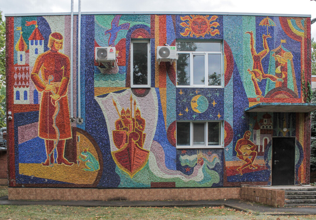 Сегодня детский сад завода радиоизмерительных приборов Краснодара переориентирован в Клинику ФГБОУ ВО КубГМУ Минздрава России. К счастью, нам точно известно имя главного художника — Николай Турков, художников-исполнителей, которые выкладывали мозаику: Виктор Онуфриев, Игорь Демиденко, Эдуард Барышев. И годы создания панно — 1979—1980. Ее особенность — в знакомых многим с детства сюжетах и персонажах из русских народных сказок. Сегодня можно буквально сыграть в игру у мозаики и попробовать вспомнить все изображенные на ней сказки. А для меня эта работа является еще одним символом того, что мозаика — нечто большее, чем советские агитплакаты и исторические эпопеи. Иногда это просто приятные сюжеты из знакомых сказок, созданные для того, чтобы окружающее пространство приобретало качественно новую, яркую атмосферу и радовало детей, которые в прошлом ходили в этот садик.