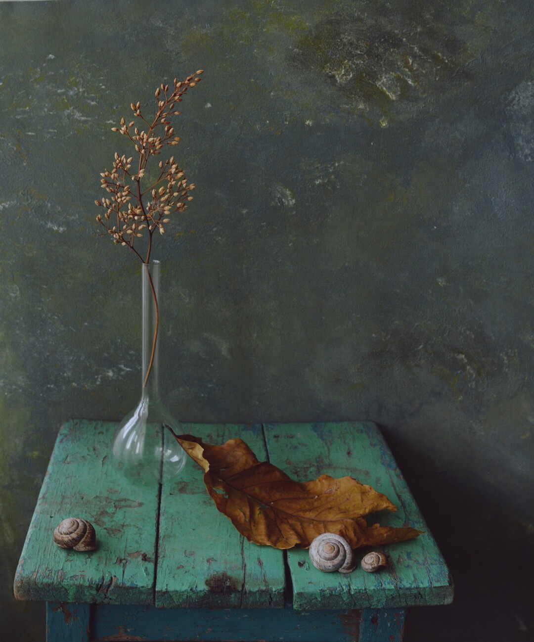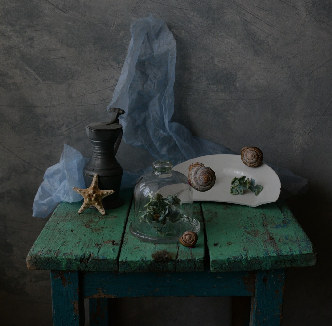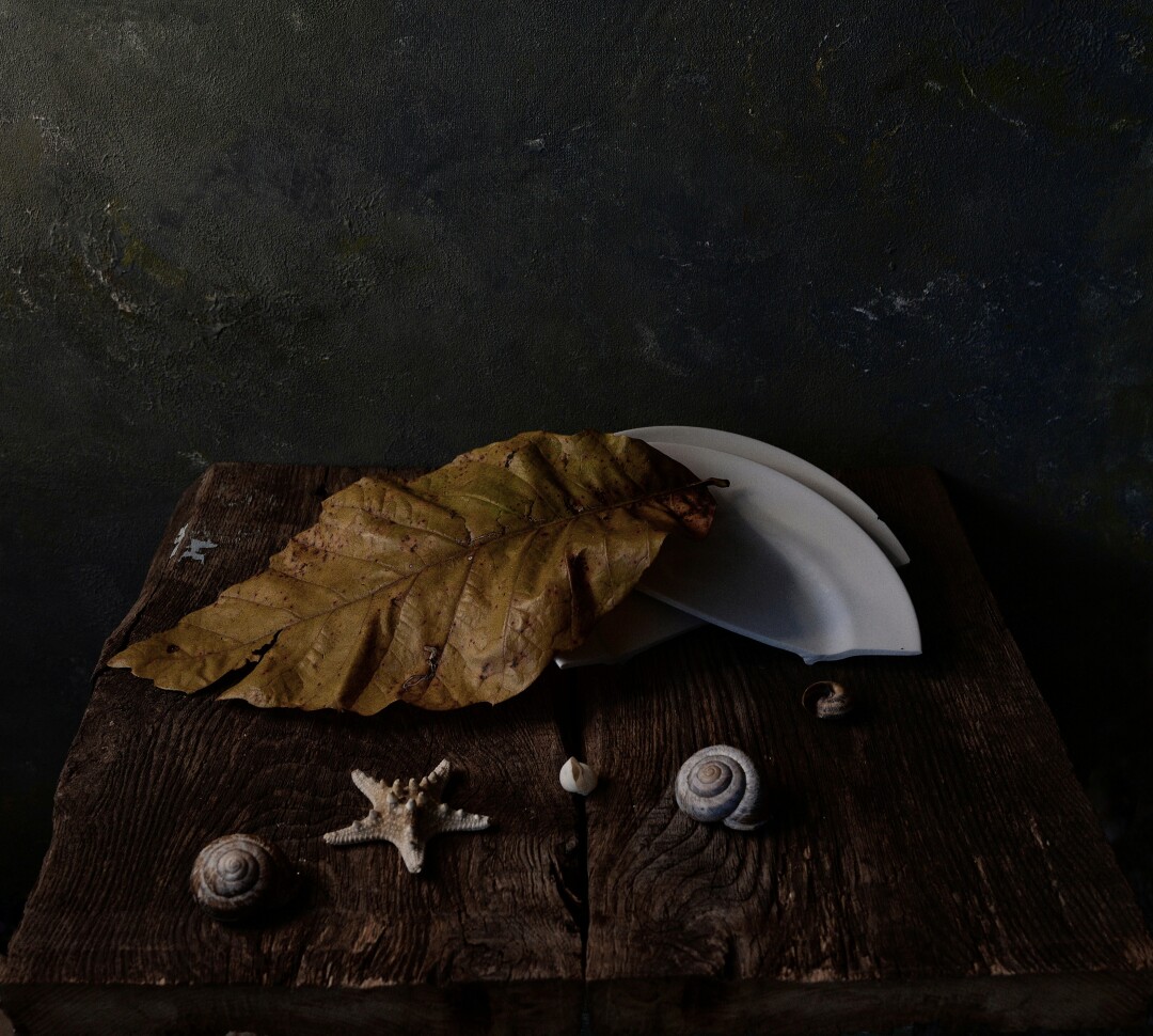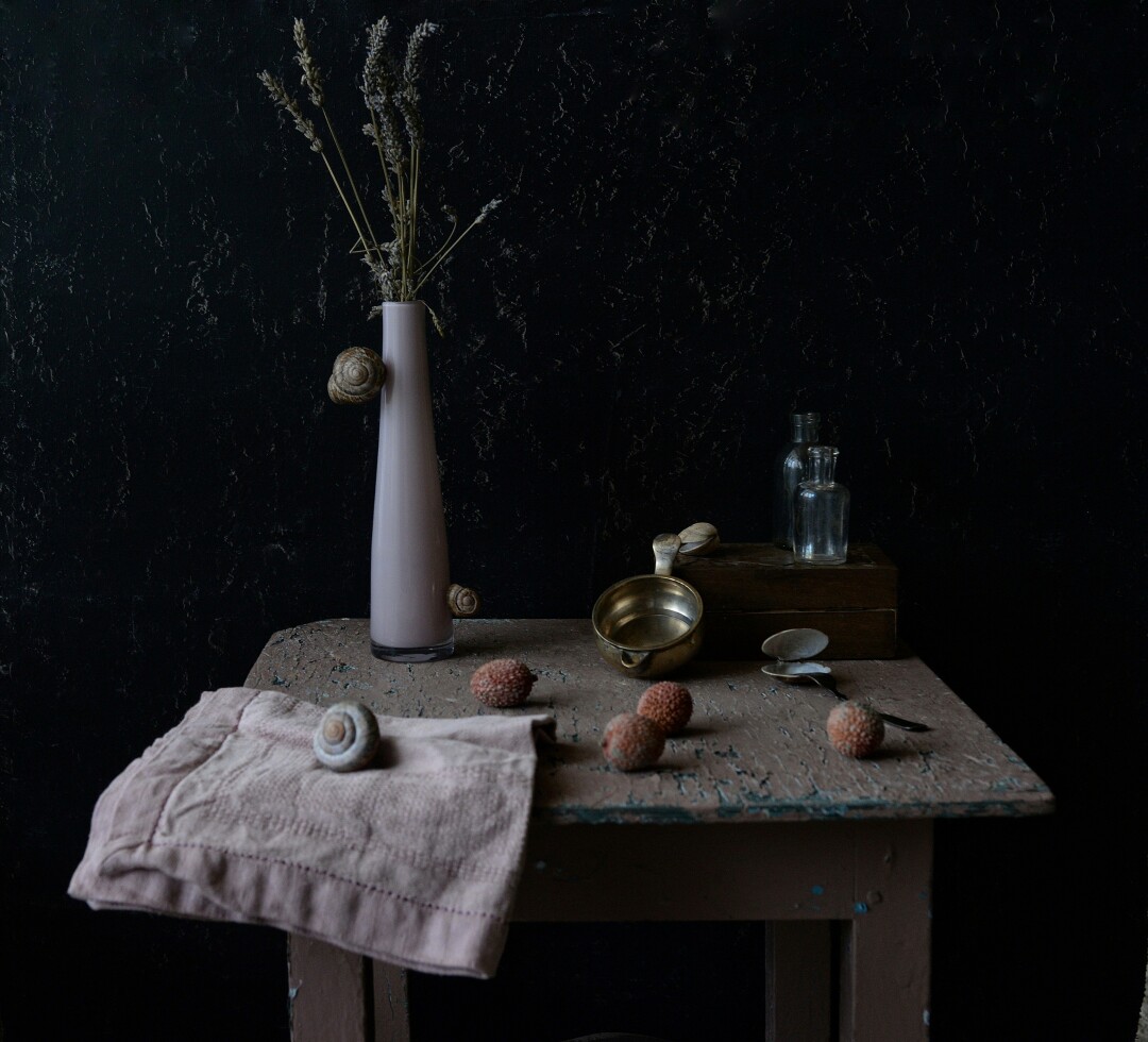 Богатая фактура материалов: дерева, стекла, глины, выявляет, подчеркивает и выносит на первый план любовь автора к деталям, умение работать со светом и тенью. В фотографиях сменяют друг друга времена года: опавшие листья каштана, сухие укропные зонтики, цветущий гиацинт и папоротник. Здесь нет случайных вещей, каждый предмет несет в себе настроение дня.