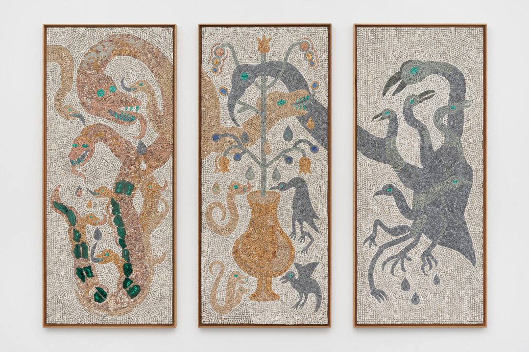 Евгений родился и вырос в Республике Тыва, где археологи находят поразительные памятники скифского искусства, то самое скифское золото. Мозаики, бронза и архаичная керамика Евгения Антуфьева, собранные в зале какого-нибудь музея, могли бы сойти за коллекцию древностей — художник более пятнадцати лет искусно создает собственную мифологию на основе наследия малой Родины. И самое главное, делает это без колониальной оптики. «Сейчас мифологическое сознание — это уже не форма преодоления (пусть мнимого) незнания, а скорее способ безболезненного погружения в незнание, создание собственной защищенной модели существования. Создание ритуала как цементирующей основы условной реальности, спасение от возможного».
