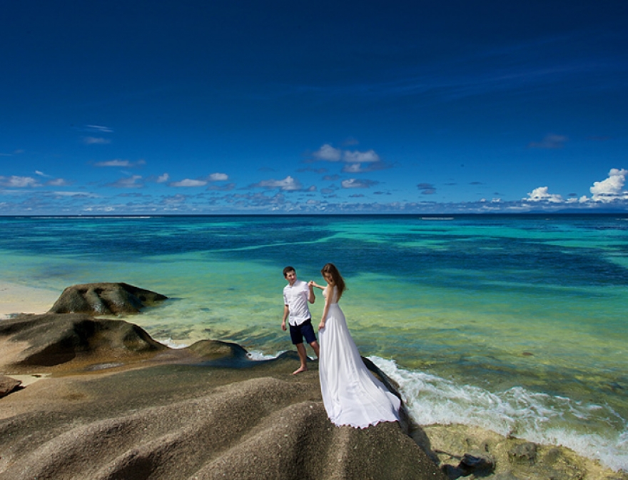 Последние три года я довольно часто снимаю свадебные фотосессии и лав стори за границей, наслаждаясь идиллическими пейзажами разных уголков планеты. Острова Индийского океана – потрясающее место как для проведения церемонии, так и для самой фотосессии. Нужно ли говорить, что на съемке на Сейшелах я была не менее окрыленной, чем жених и невеста?