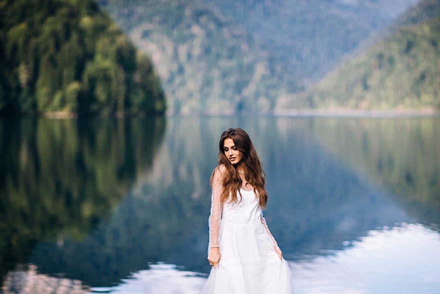 Регина и Дмитрий хотели нестандартные свадебные фотографии в природных декорациях, но, к сожалению, в день X не всегда удается оказаться в месте мечты. Так с нами и случилось, поэтому, недолго думая, поехали в прекрасную Абхазию. С самого восхода солнца и до семи вечера съемочная команда и влюбленные работали над созданием снимков. Усталость не испортила волшебную романтичную атмосферу, запечатленную на фото. Все были счастливы.