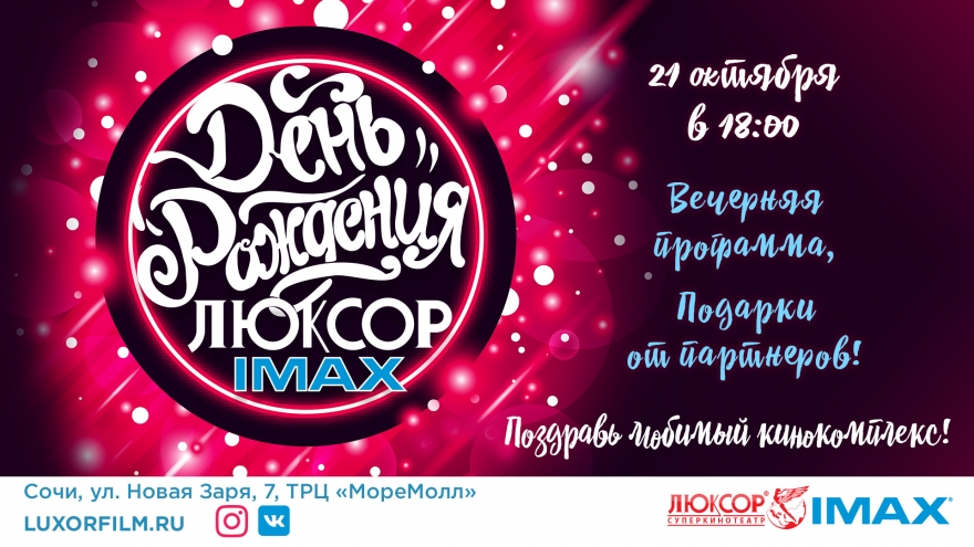 Кинокомплекс «Люксор IMAX» приглашает Вас отпраздновать свой ПЯТЫЙ ДЕНЬ РОЖДЕНИЯ!