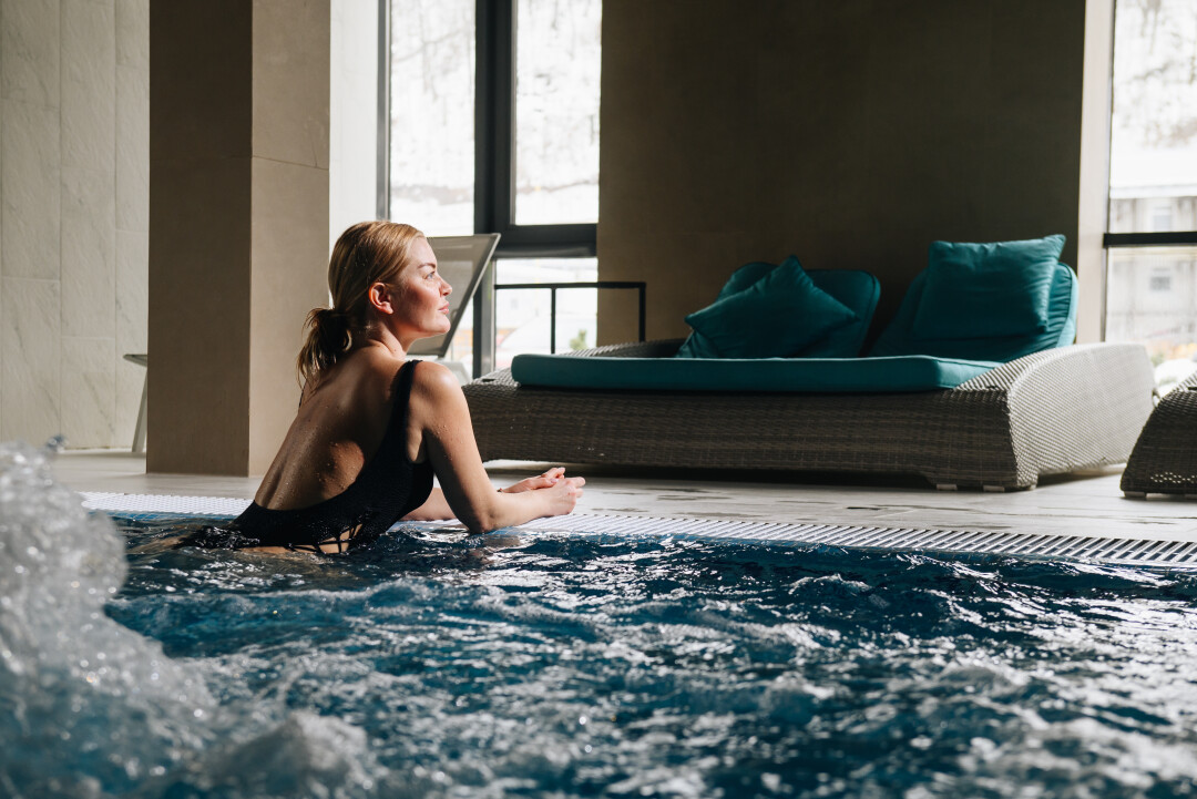 После стараний и потери калорий идем восстанавливаться в акватермальную зону с бассейном и джакузи. Бонусом тут разные парные привилегии: турецкий хаммам, русская парная, финская сауна, можжевеловая баня.