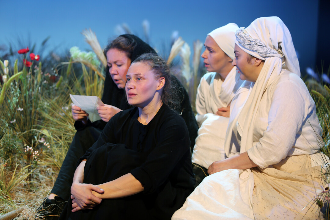 Музыку к постановке написал Артем Тульчинский, который ранее уже сотрудничал с Молодежным театром. Он был композитором культового спектакля «Гроза». Декорации и костюмы создала главный художник театра Настя Васильева. А художником по свету выступил Руслан Майоров, он с 2015 года работает в Театре имени Евгения Вахтангова. «Материнское поле» — история многих женщин, семей и народов. Это история о силе, которую дает родное поле, родная земля. Именно здесь проходит вся жизнь героев. С ним связаны минуты любви и счастья. Именно с полем, как с родным человеком, разговаривает жнея Толгонай, делится своими воспоминаниями и горестями. Здесь в тяжелые годы войны она черпает мужество, душевную стойкость и мудрость. В постановке заняты заслуженная артистка Кубани Юлия Макарова, артисты театра Инга Аничкина, Полина Шипулина, Александр Теханович, Евгений Парафилов, Ян Новиков, Денис Юров и другие.
