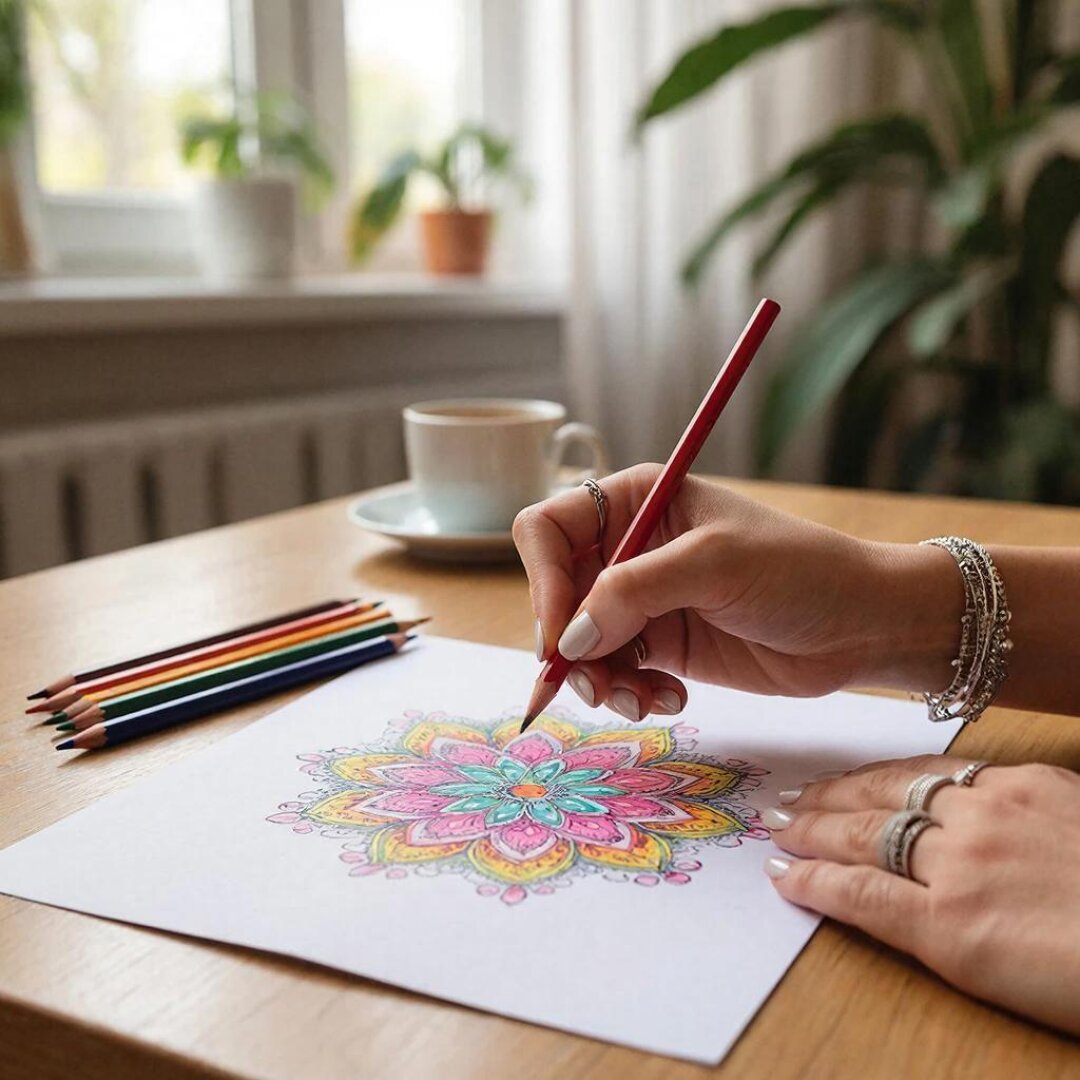 Мандала — сакральное изображение, дневник души, модель Вселенной. Рисуют её обычно внутри круга, концентрируясь на своем внутреннем мире. Важен процесс, а не результат.