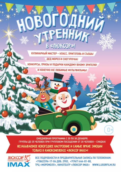 С 20 по 30 декабря будут проходить детские утренники в кинокомплексе «Люксор IMAX» .