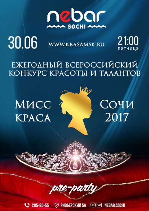 Финал всероссийского ежегодного конкурса красоты и талантов "Мисс Краса Сочи 2017". Официальное pre-party в @Nebar.sochi