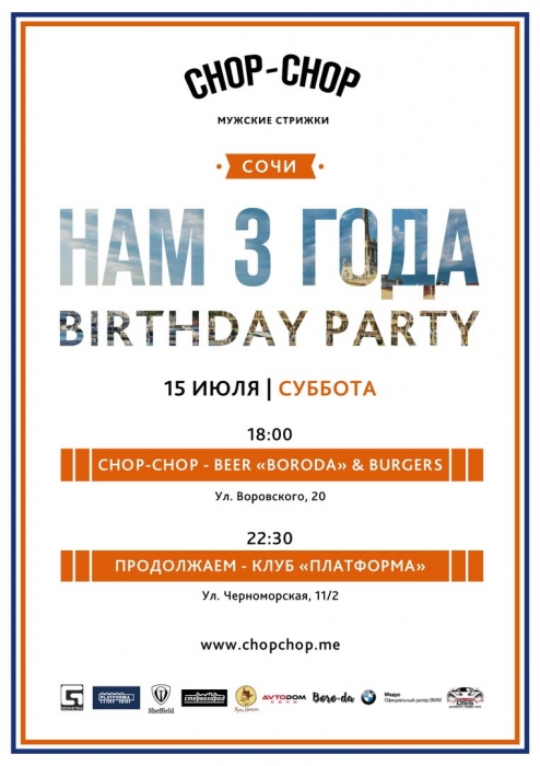 Друзья, нас с вами ждет важное событие - 3 года, как Chop-Chop распахнул свои двери!