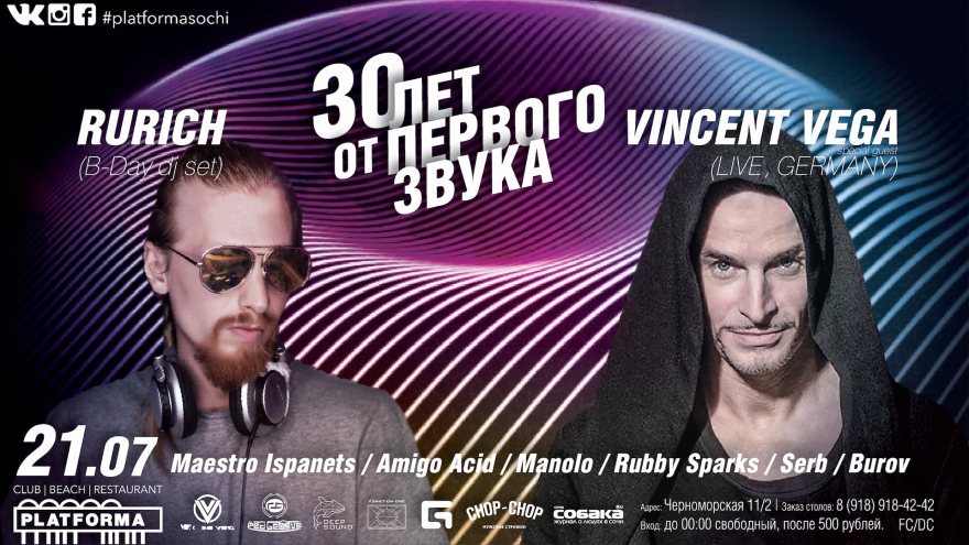 VINCENT VEGA – выдающийся немецкий музыкант с 20-ти летним стажем. За его плечами выступления в клубах и на рейвах по всему миру, в том числе «Space» (Ibiza) и «Cocoon» (Frankfurt); релизы на таких лейблах как «Ministry Of Sound», «Envy My Music», «Tempered Records» и на собственном «Skilled Records». Летом 2004 года Vincent Vega и его сопродюсер Timo Di Roy выпускают хит «Don’t Stop». Он выходит на одном из самых известных и влиятельных лейблов танцевальной музыки «Ministry of Sound» и сразу же взрывает практически все площадки Европы. Основной микс самого Vincent Vega стал мелодией Ибицы, которую играли повсюду: от «Space» до «DC 10».