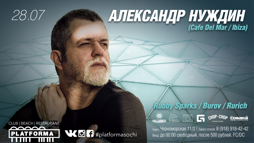 DJ Александр Нуждин – один из самых успешных, узнаваемых и харизматичных радиоведущих в России. Как ди-джей он с начала своей карьеры успел отыграть во всех значимых клубах Москвы и многие из ныне легендарных заведений поднимал с нуля. Стал лучшим lounge ди-джеем по мнению авторитетного Moscow Lounge Festival и благодаря этому, одним из первых российских ди-джеев отработал в легендарном Cafe Del Mar на Ибице. На данный момент, Александр Нуждин ежегодно представляет Россию в Café Del Mar. В 2011-м году стал официальным резидентом Cafe Del Mar (Ibiza). Является первым российским ди-джеем играющим на самой известной радио станции Ибицы Ibiza Sonica. Автор и ведущий радио передач на радио, отмеченных наградами как лучшие музыкальные программы России “Проверено Электроникой” и “ФМ Кафе”.