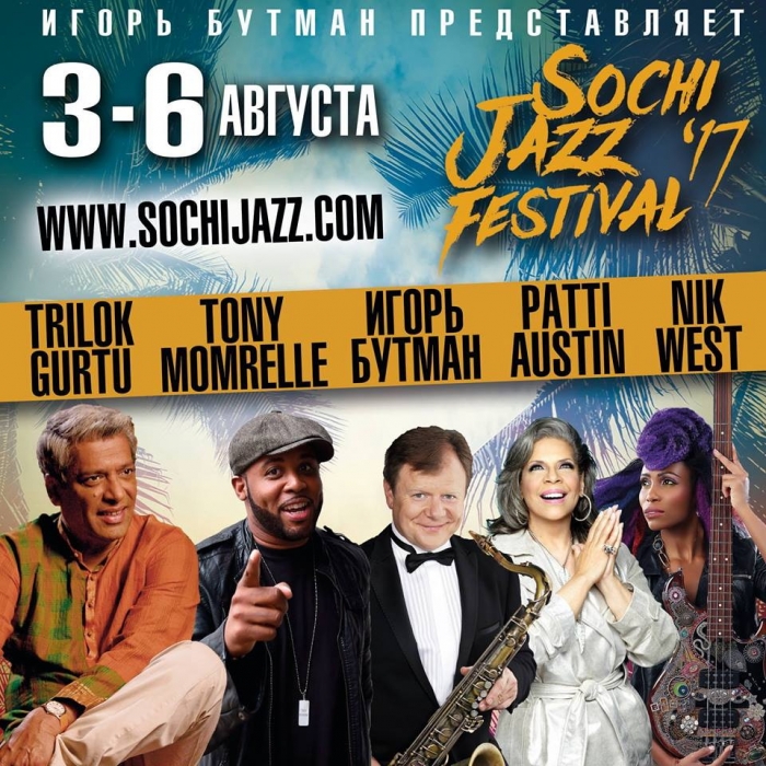 Восьмой Sochi Jazz Festival совершенно точно войдёт в историю: такому наплыву звёзд позавидует не один европейский фестиваль! К обладательнице Grammy Патти Остин, экстравагантной звезде фанка Ник Уэст и главному соул-певцу Великобритании Тони Момреллю присоединяются группа знаменитого перкуссиониста Трилока Гурту, американско-европейский проект The Organic Trio и рок-группа … Игоря Бутмана!
