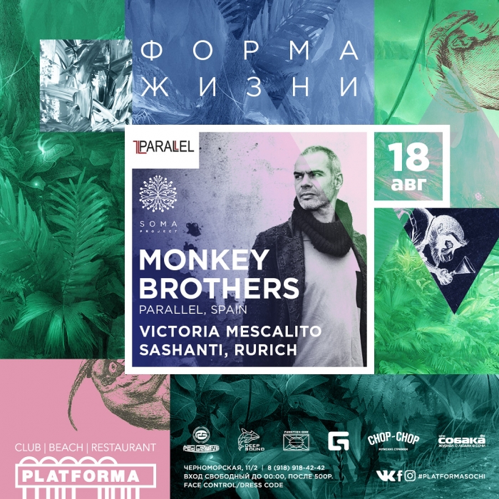 Monkey Brothers — испанский андеграунд проект, основатели лейбла Parallel, резиденты MDF Sofa club, La Mousse Club и Nature Club. Их выступление — это эпатажное шоу, наполненное коварной страстью и брутальной экспрессией, свойственной только испанцам!