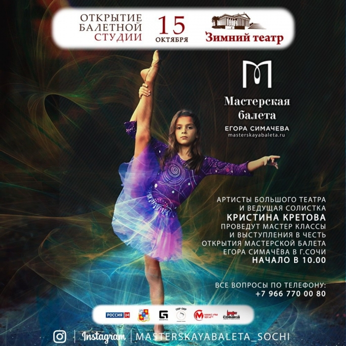 15 октября в Зимнем театре проведут мастер классы и выступления в честь открытия мастерской балета Егора Симачёва в г. Сочи