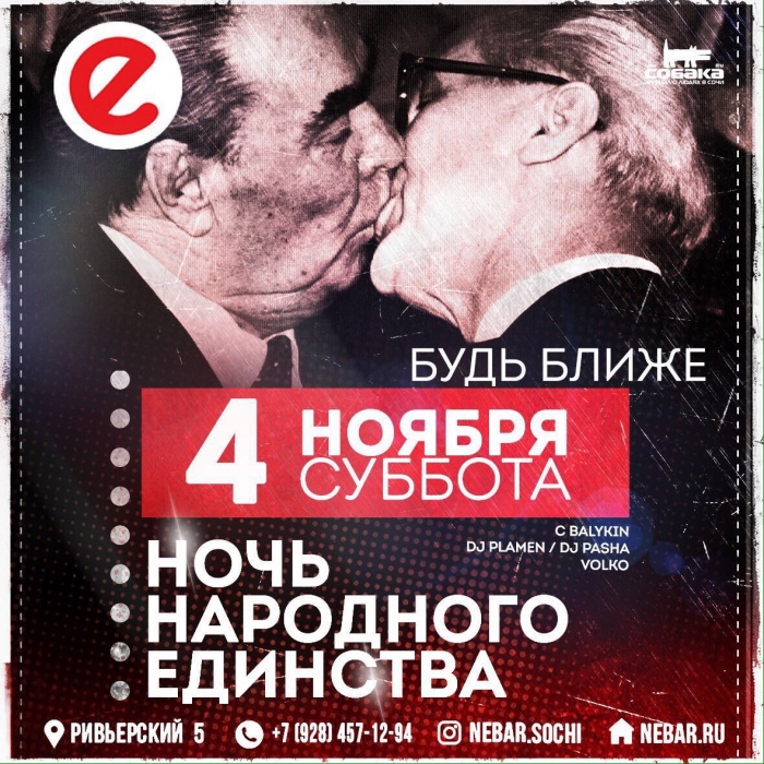В честь этого праздника, в самом шумном баре города Сочи - одна огромная чаша пунша! И пусть вас не смущает, что в эту ночь в баре будет тесно... ведь всегда можно держаться ближе к девушкам, они приятнее!